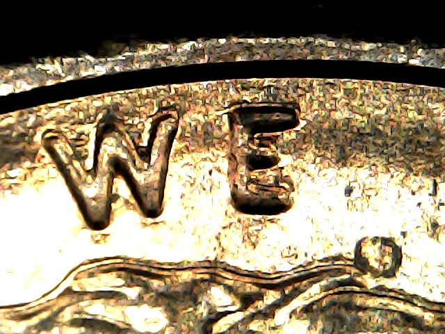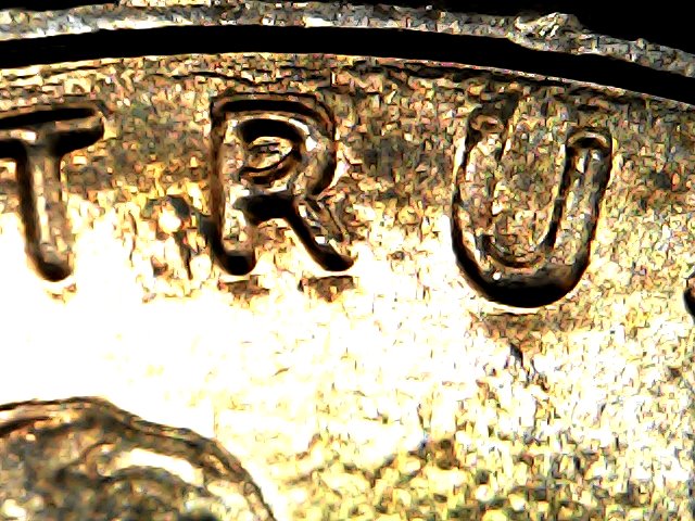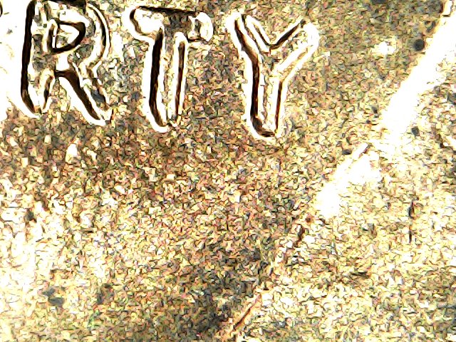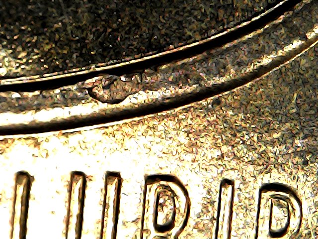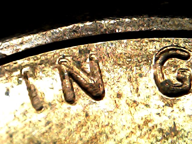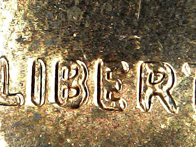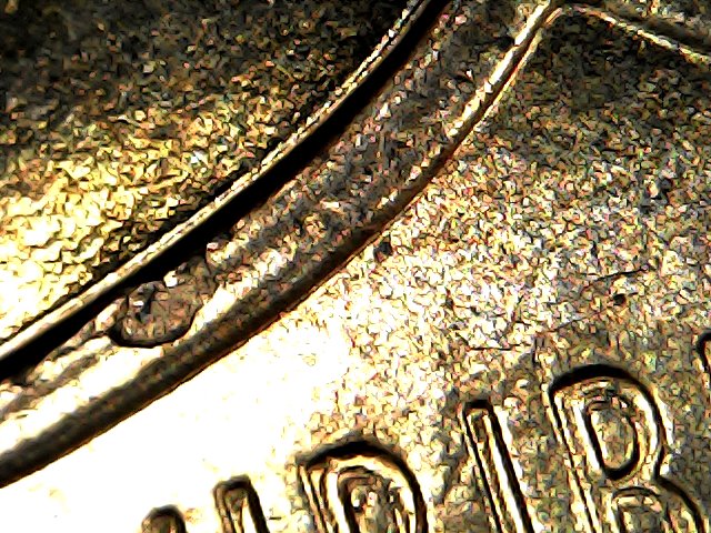 Yes there is lighting glare unfortunately. There is heavy notching on the left side of all letters of Liberty. I will try to take better photos later