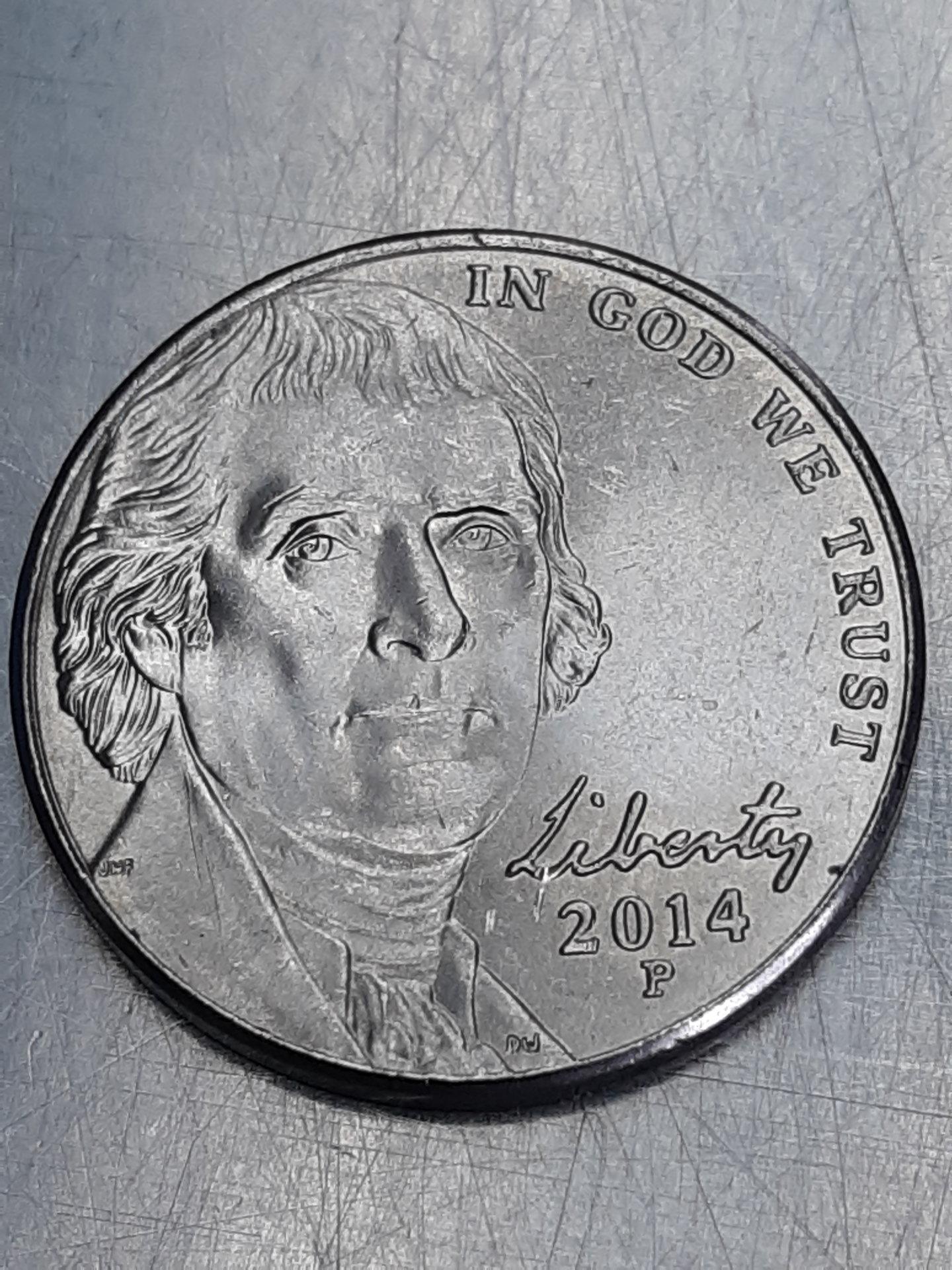Hey. 2014 P Jefferson Nickel Reverse. Noticed what looks like an extension to the roof of front door (left side) very visible. There really isnt any other visible Mark's of any kind other than this. Any thoughts or info are appreciated