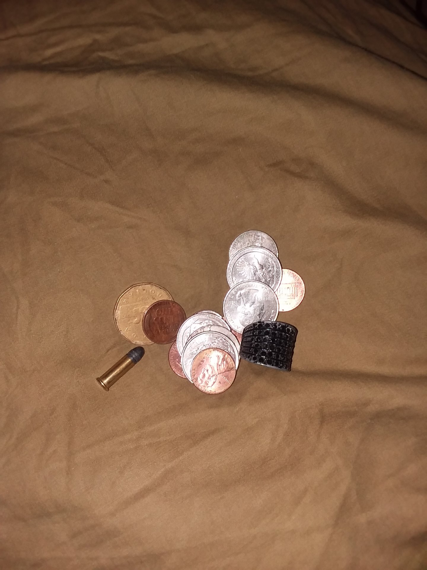 I went to Kroger today and as always I hit the coinstar when I first walk in and I found a few cool things today. I'll post the Homestead quarter first. It has the "snow on the roof" die chip and appears to have a die chip on the window also. These pics suck and I know and im only posting the reverse because there's nothing to see on the obv and other than the fact it's the first I have found there is nothing spectacular to show other than its a coinstar find lol. Overall I found a 1987 Loonie, what I believe is a .22 caliber bullet, one ugly ring, a 1947 wheat and $1.55 face value. The Loonie bullet and ring was in a jar on top full of nasty candy the rest was in the reject tube.