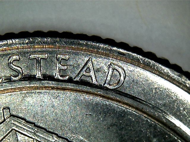 Anyone have any ideas about what this is or what caused the striation? It runs almost the entire circumference of the back of the coin. At first I thought post-mint damage, but the letters and numbers are unaffected. The D is doubled also.
