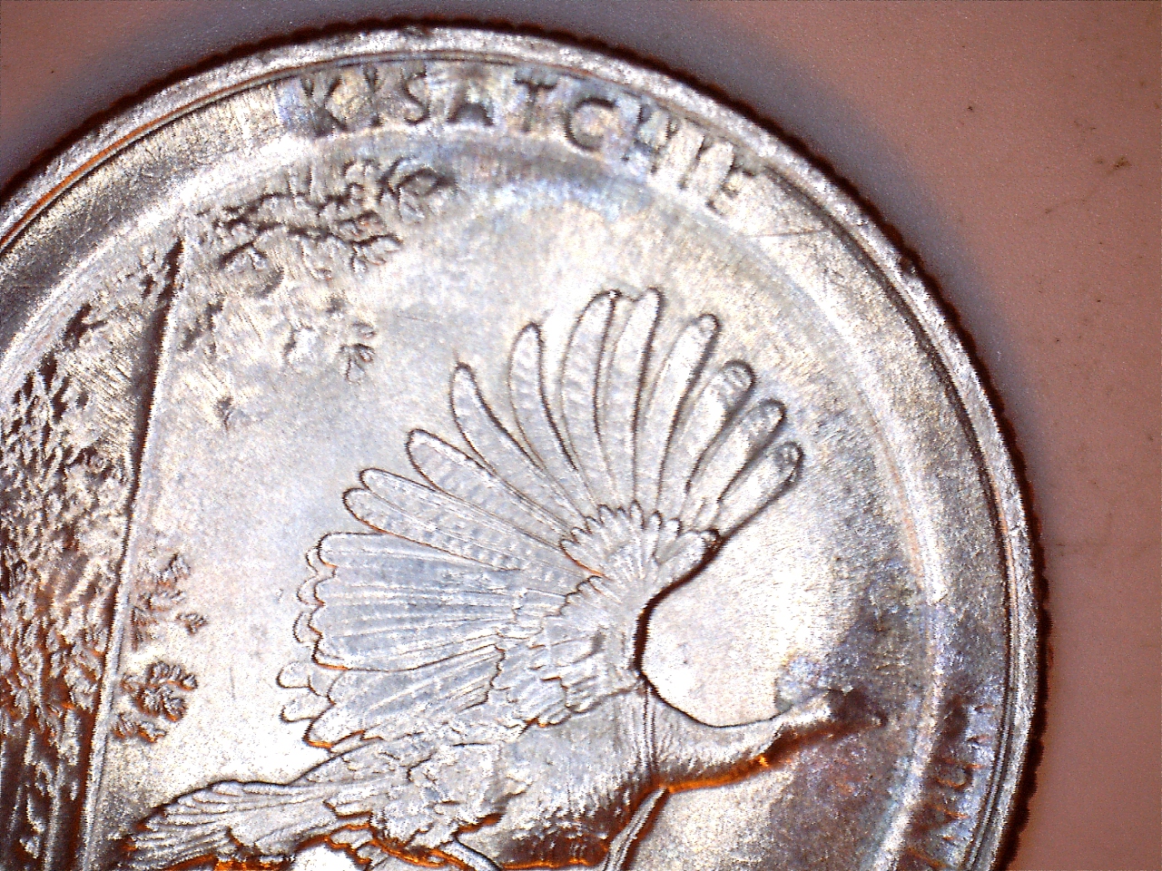 What you have is severe die deterioration accompanied by at least one die chip. It's the sort of deterioration that plagues the America The Beautiful series.