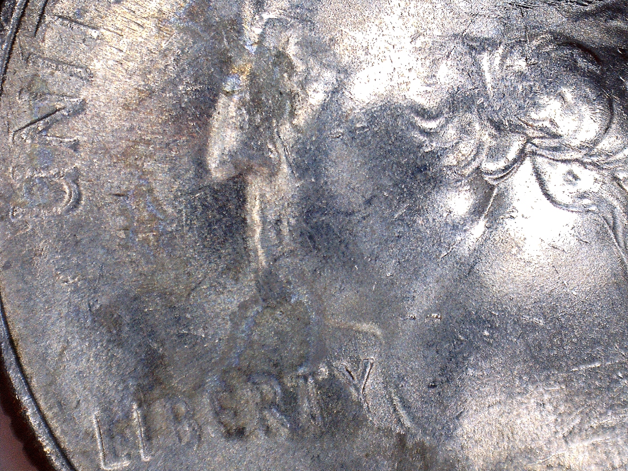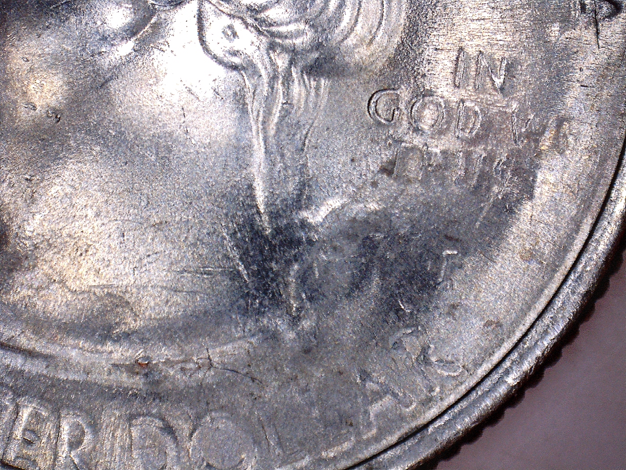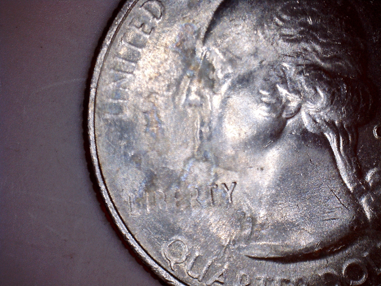 found this today and I am clueless on what would cause this. At first I thought it was my usb microscope acting strange but I put another coin under it and it looked fine. I need a new micro camera as this one doesn't show color or toning of the coin but for now this is what I have. My question is what would cause this, I see doubling, struck through grease die chips at the top of Washington head some strange raised addition. I don't know there are so many things that I see on this coin im at a loss and hope someone else can tell me what they think