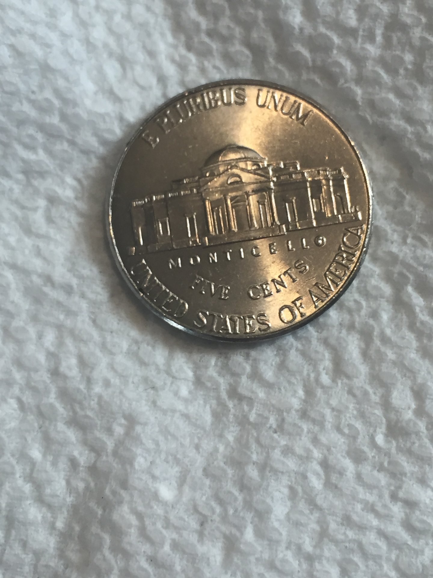 Found this in my change. I think it is a die cut. The last O in Monticello and the second T in states.