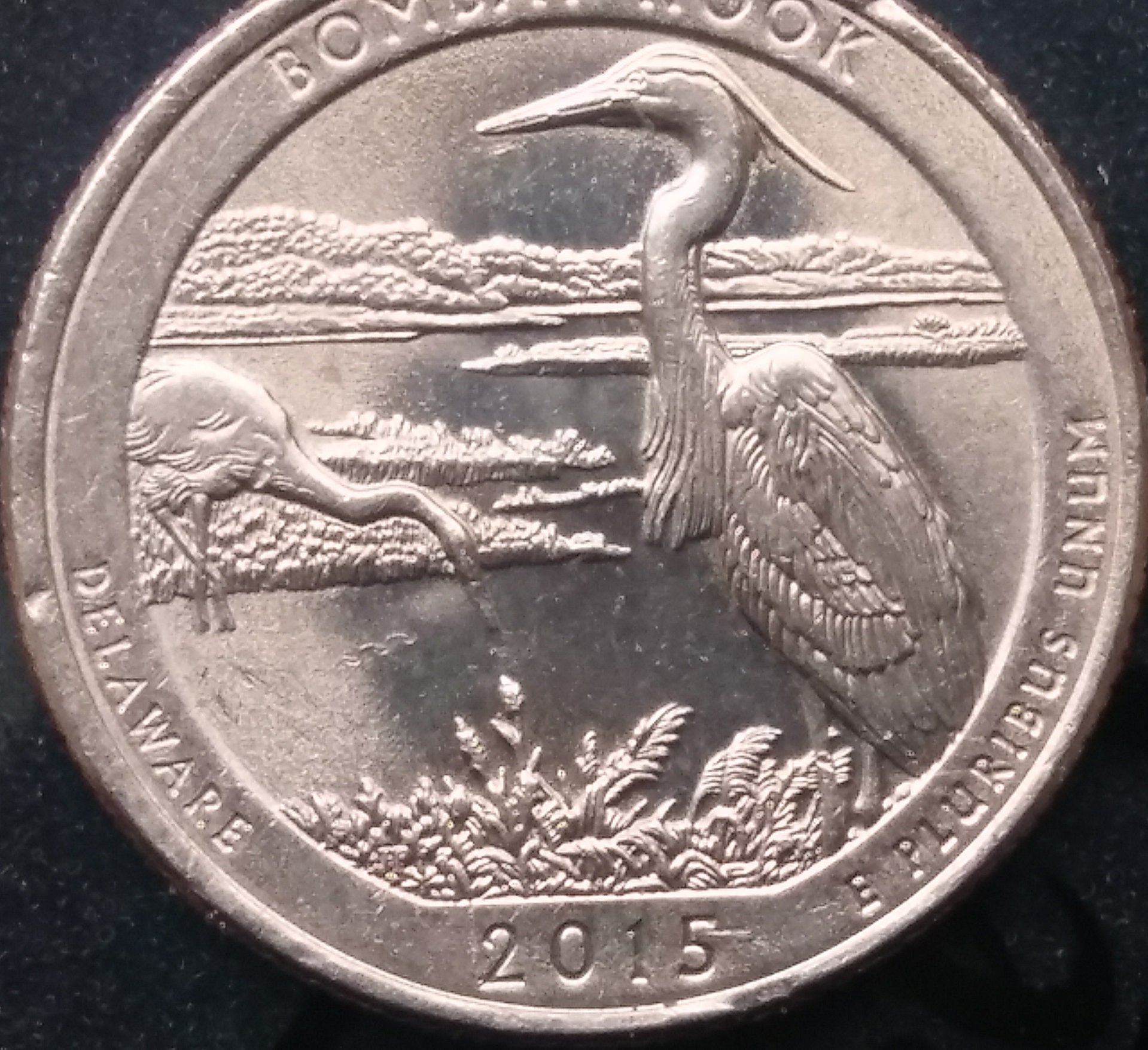 First thing I noticed is that the coin was broad struck. On the reverse there is what appears to be a strike error under the bird in the water. It appears to be a piece of wire struck through. I call this one "snakeinthewater".