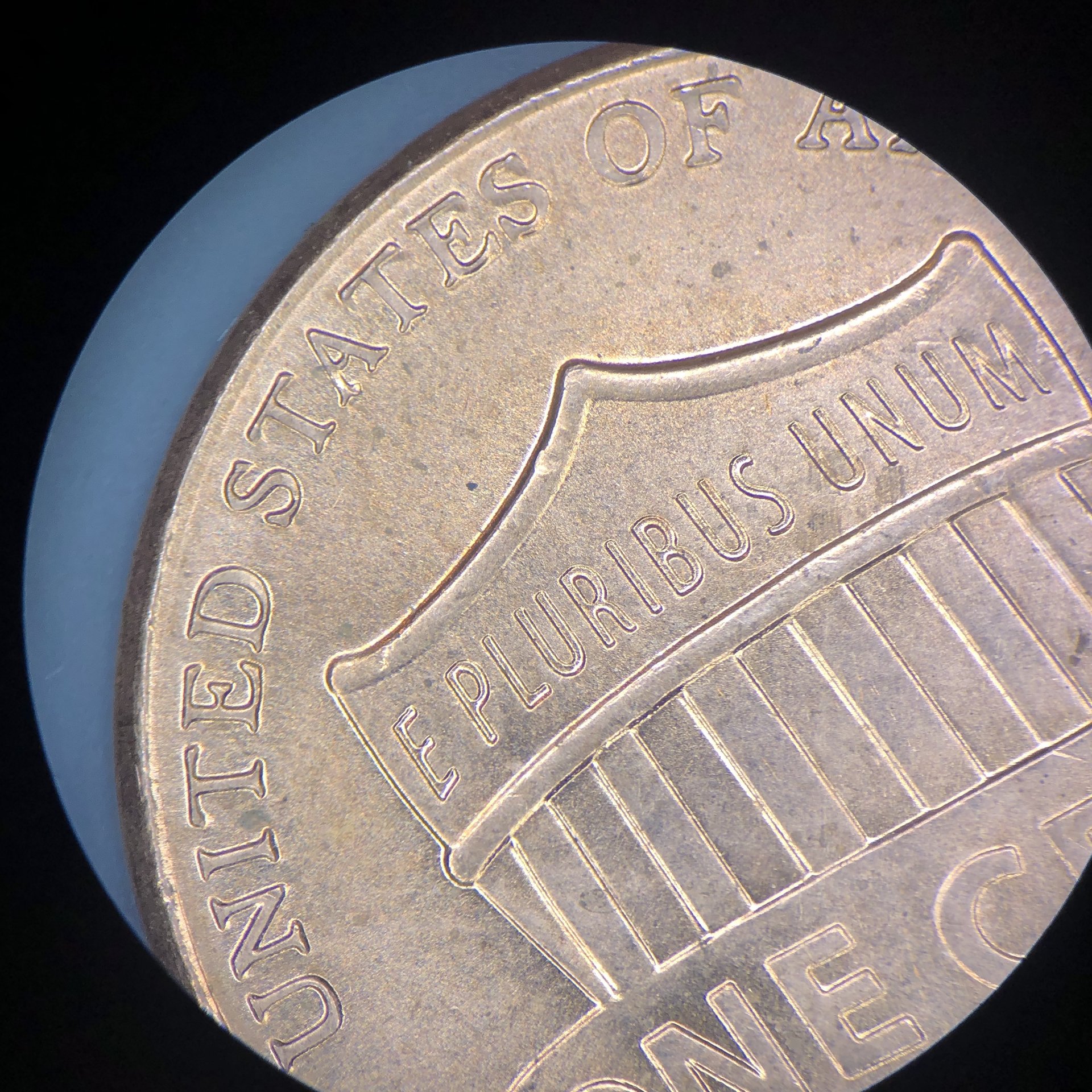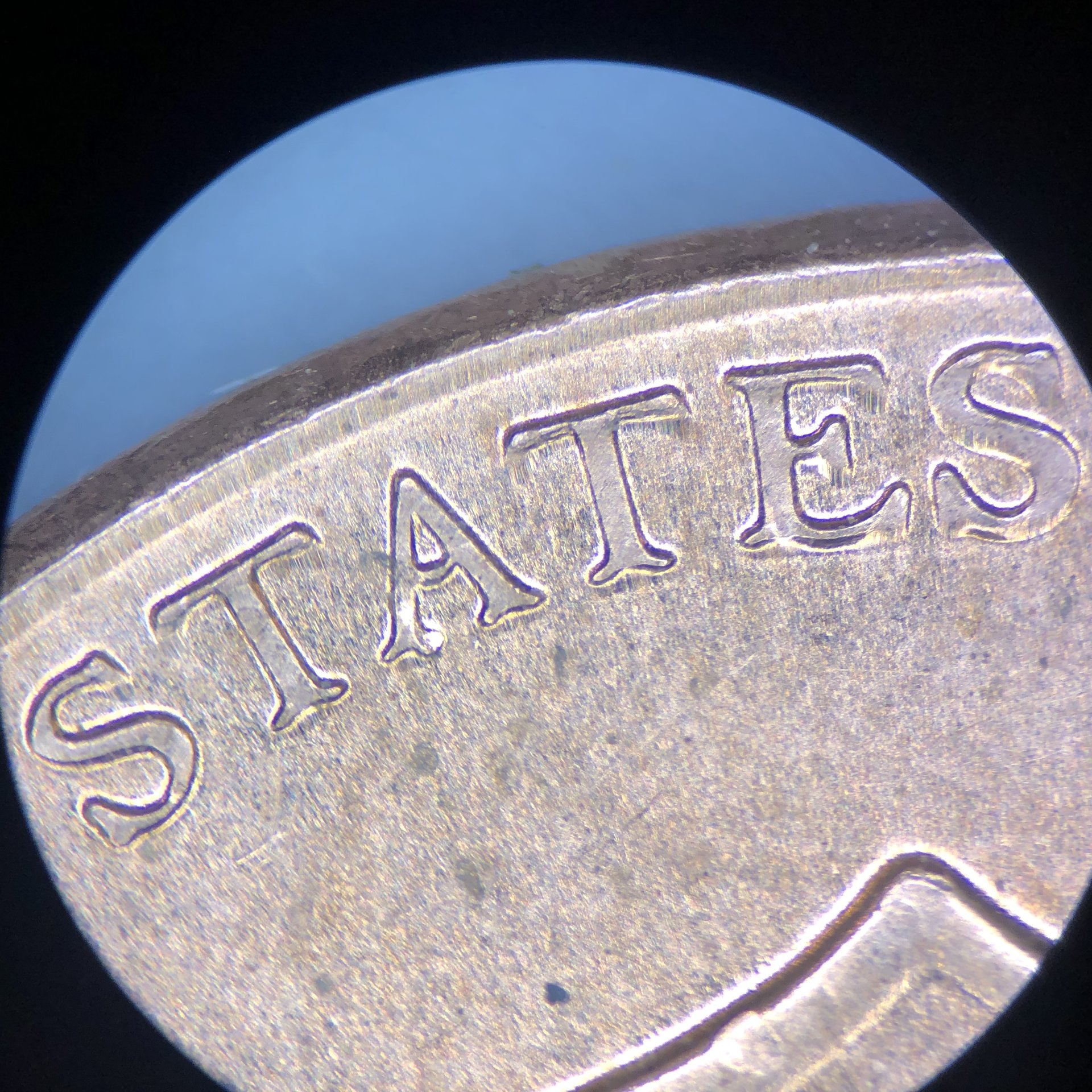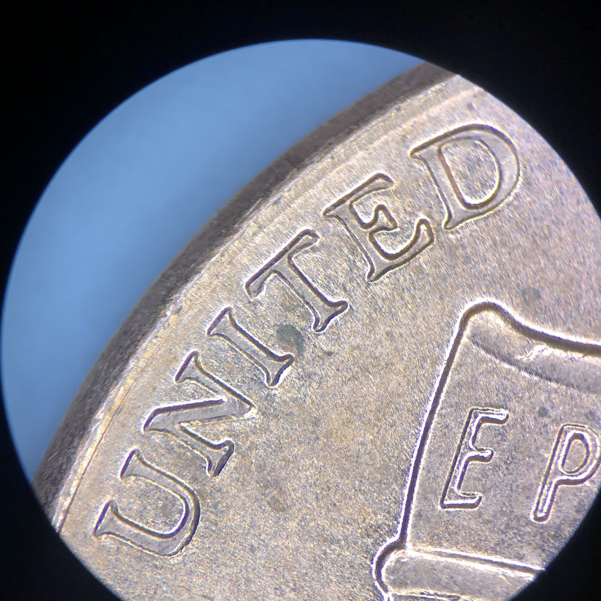 Yeah, it does. The bottom of the letters look sort of 'wing-tipped' or something. It may be post mint damage. But I can't imagine what might have hit it or caused that regular appearing damage like that...if it IS damage.