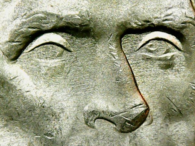 I have only ever found one other like this before, but I think it looks cool. I'm thinking strike through, or more likely a filled die error.