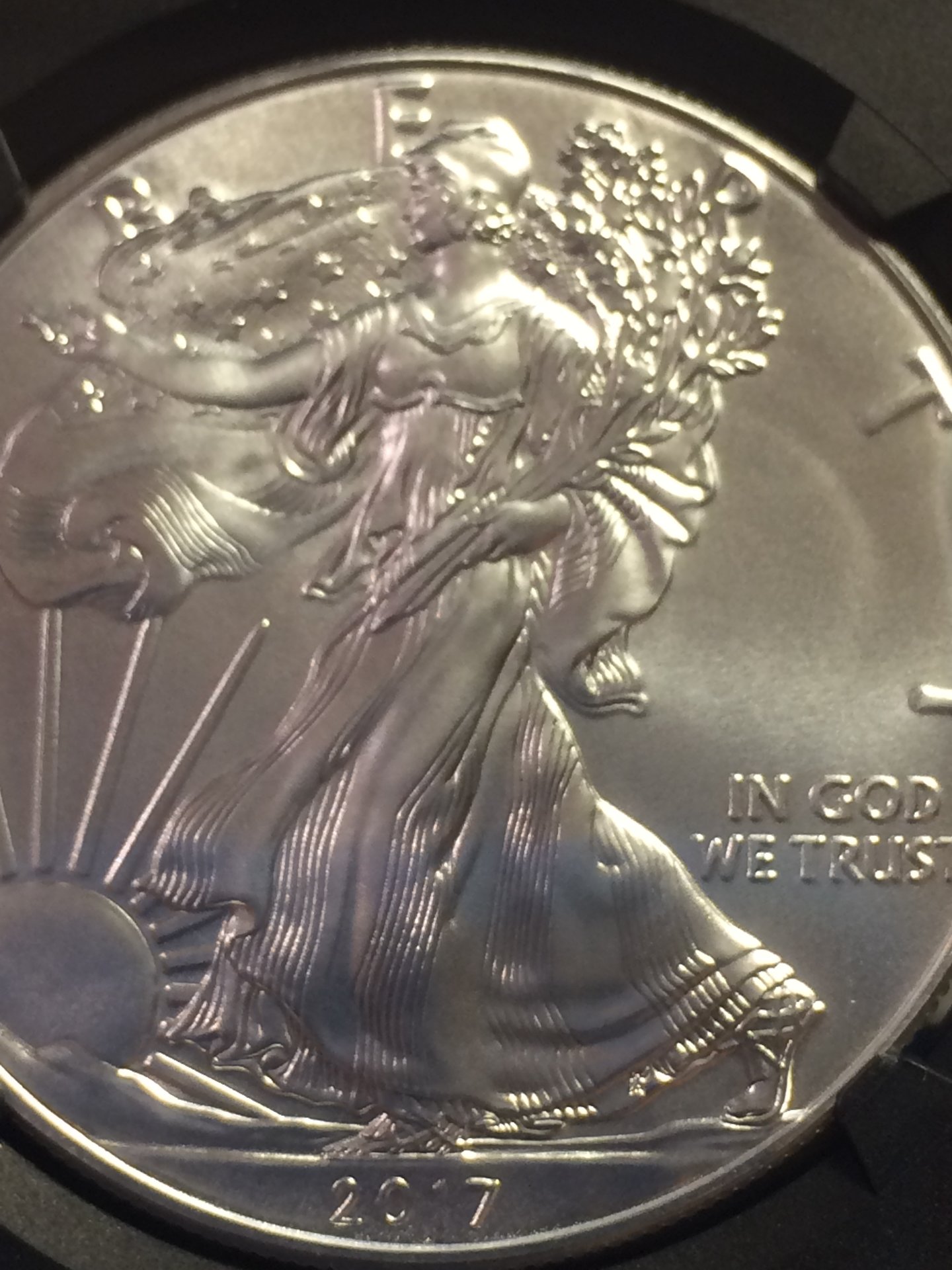 ...and why would you not expect to see it on an MS-70? That's a nice souvenir of the engraver from NGC. Are there two hits on the dress under and left of "We?" What are the two gray patches in the dress down from center? Hopefully, all those white specks in the image are lint and debris on the plastic.