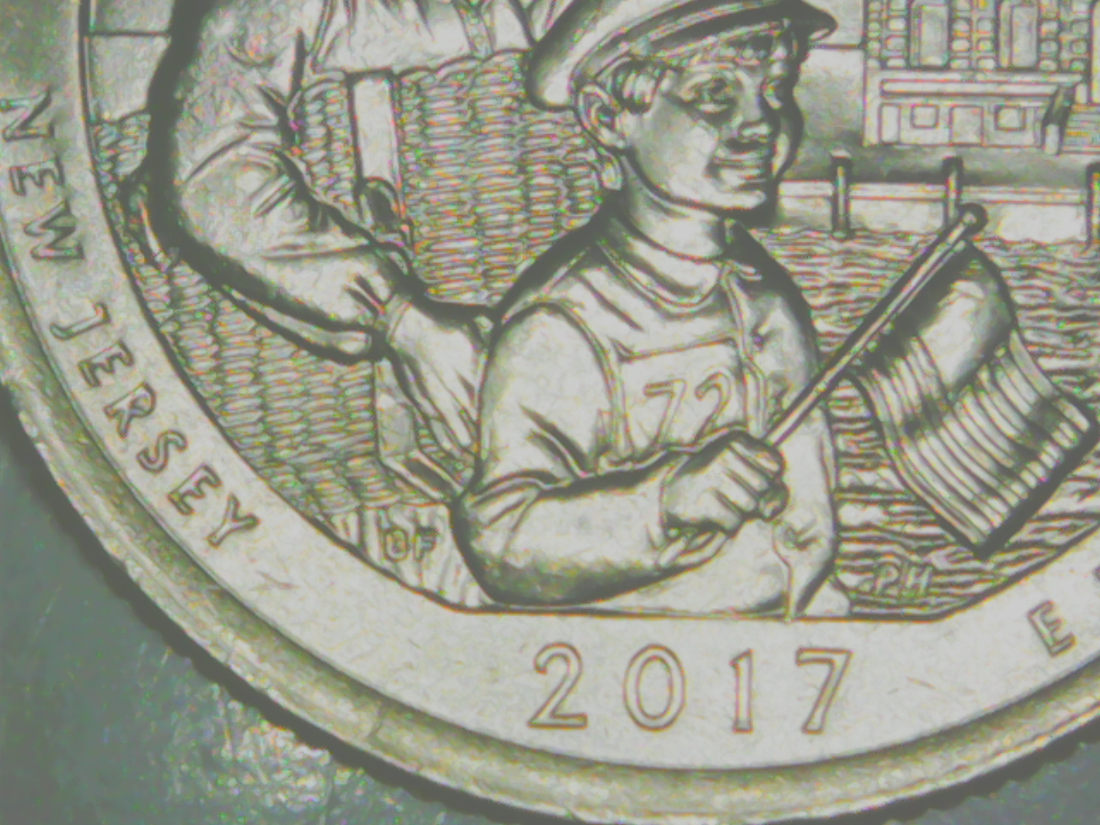 5 minutes after I went back to finish looking through the roll of quarters where I found the 1996 Quarter with the ridges through the eye I found this NJ 2017 Ellis Island Quarter with a "cud" or die mark or whatever it's called at her elbow. Wonder if this is new? Thanks.
