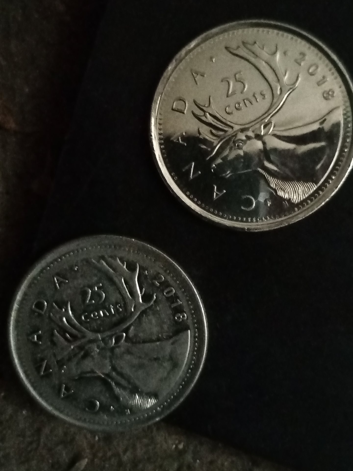 Hi, I'm new and would like to know what's with this quarter. They are both 2018 but the less shiny one seems old but not worn. Any comments welcomed Thanks