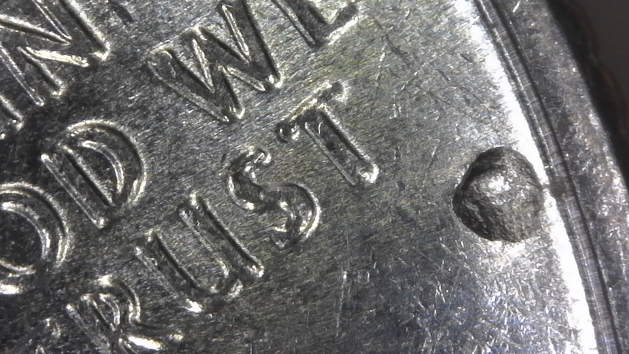 Error reverse above wing and back of bird's neck. It appears to be a die crack error. I call it "bird hunting".