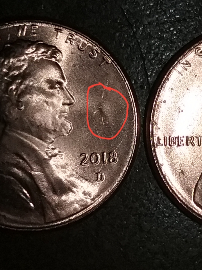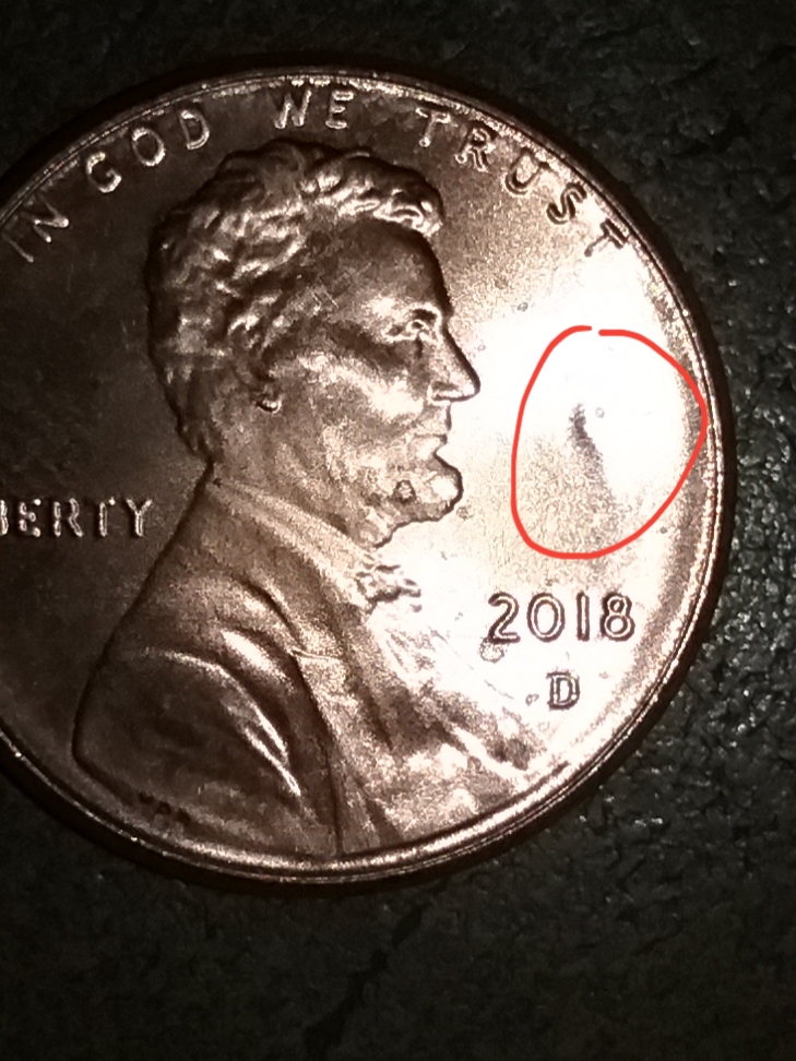 I have two fresh Lincoln cents with the same dimple like area on two identcal spots on both coins what's up?