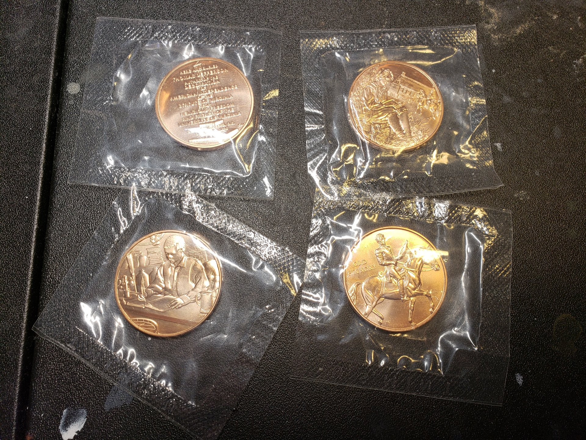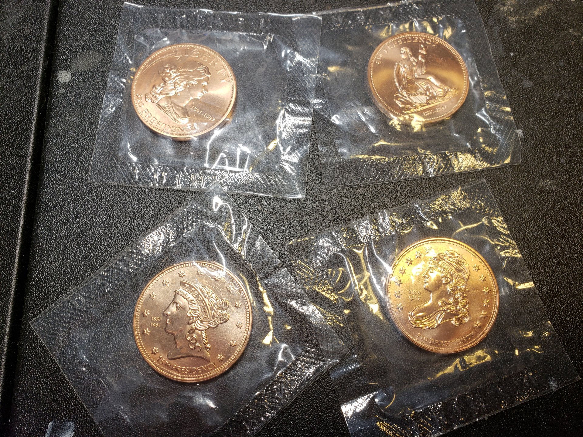 Finally got home after some travel and was able to open my gift. First, I had to cut my way through this impressive packaging: My reward was these beauties. I have been out of the loop for a while and had no idea they made these. I really like the classic coin obverses and the reverses without any text. Thank you Santa, very nice!