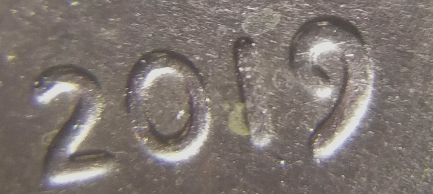 Looking at it on my computer, things look normal to me. Originally, the 9 looked thicker but it appears more like glare at this point. The T and Y normally have a deformed vertical bar, especially at the end. I don't see that here, but the glare is also distracting. Perhaps someone with more LCS experience can offer an opinion, but with the larger screen, things appear normal with your cent.