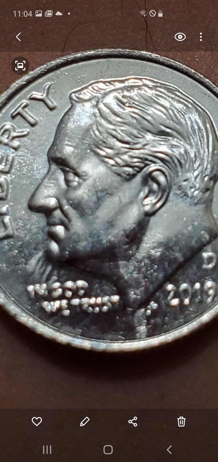 So i bought a roll of uncirculated dimes hunting for any errors and long and behold I ran into these strange images on this dime...and the roll might have more! It looks like some lamenation error with the different shades of a dull grey color on some parts (the dimes are very shiny) but then I notice what looks like an s or a small five which you can find all over the coin. That the very bottom i even see what looks like a #1 cut of from the edging! Can someone please give me some insight about this, is it even and error?!