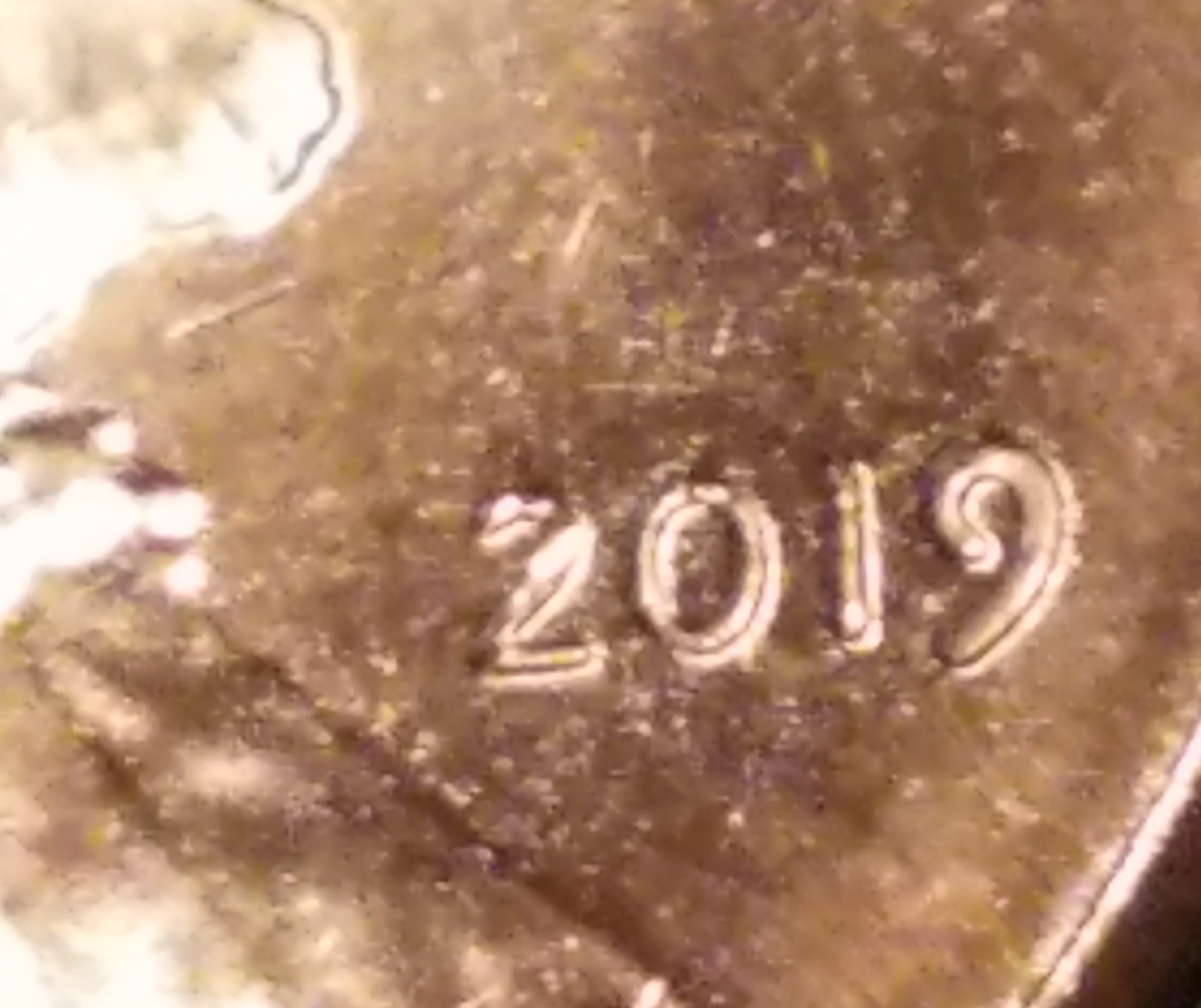 What caught my eyes more than anything was the 9 on the date. Looks like there was something inside of the loop. Taking pictures on the armrest with a dome lights can be a challenge. Till I drive back to West Virginia tomorrow morning the best I can do is edit the pictures a little to take the glare out