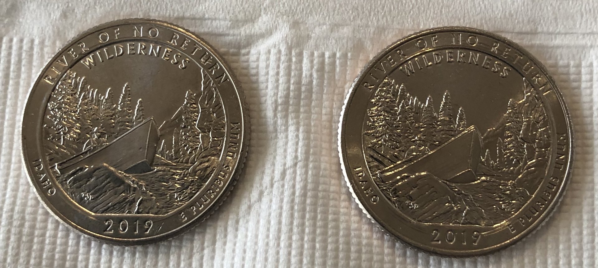 I was looking through some quarters hunting W mint marks and I came across the 2019 D Idaho Quarter. What I noticed was a ring mark around the outside I looked through more coins to try and find the same error and I finally came across one that seemed to be the same error. Not 100% exact but close. The ring mark goes through the 2019 year. I know this particular quarter has a bird in the tree error and a bird on the man’s hat error but this error I’ve never seen. I am a new collector any information on my coins would be greatly appreciated thanks for your time.