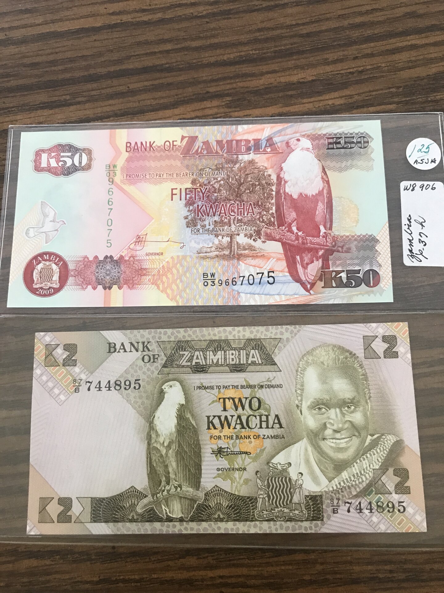Next are these very beautiful and colorful banknotes from Zambia! I really love the depiction of the bird on theses notes!