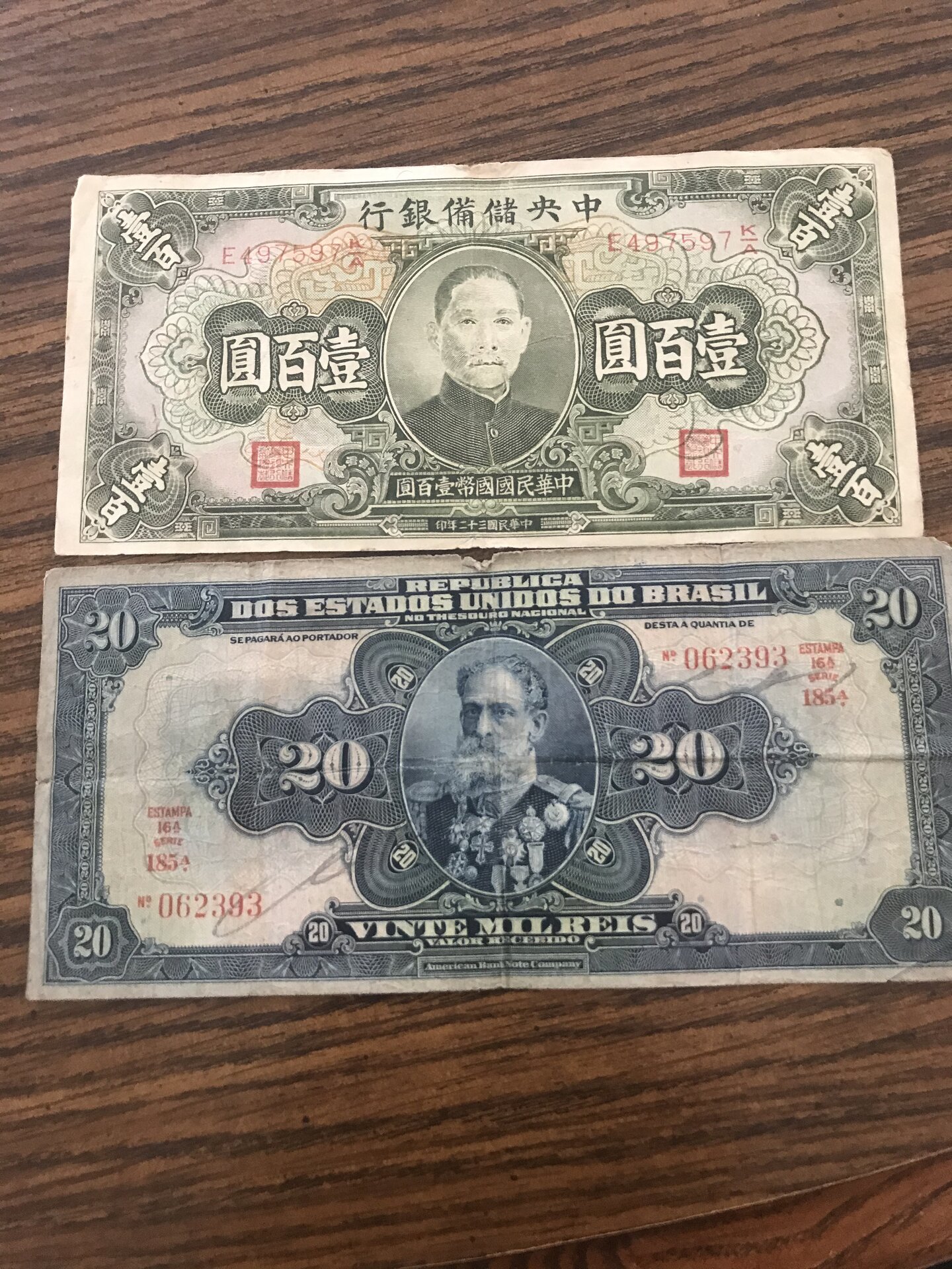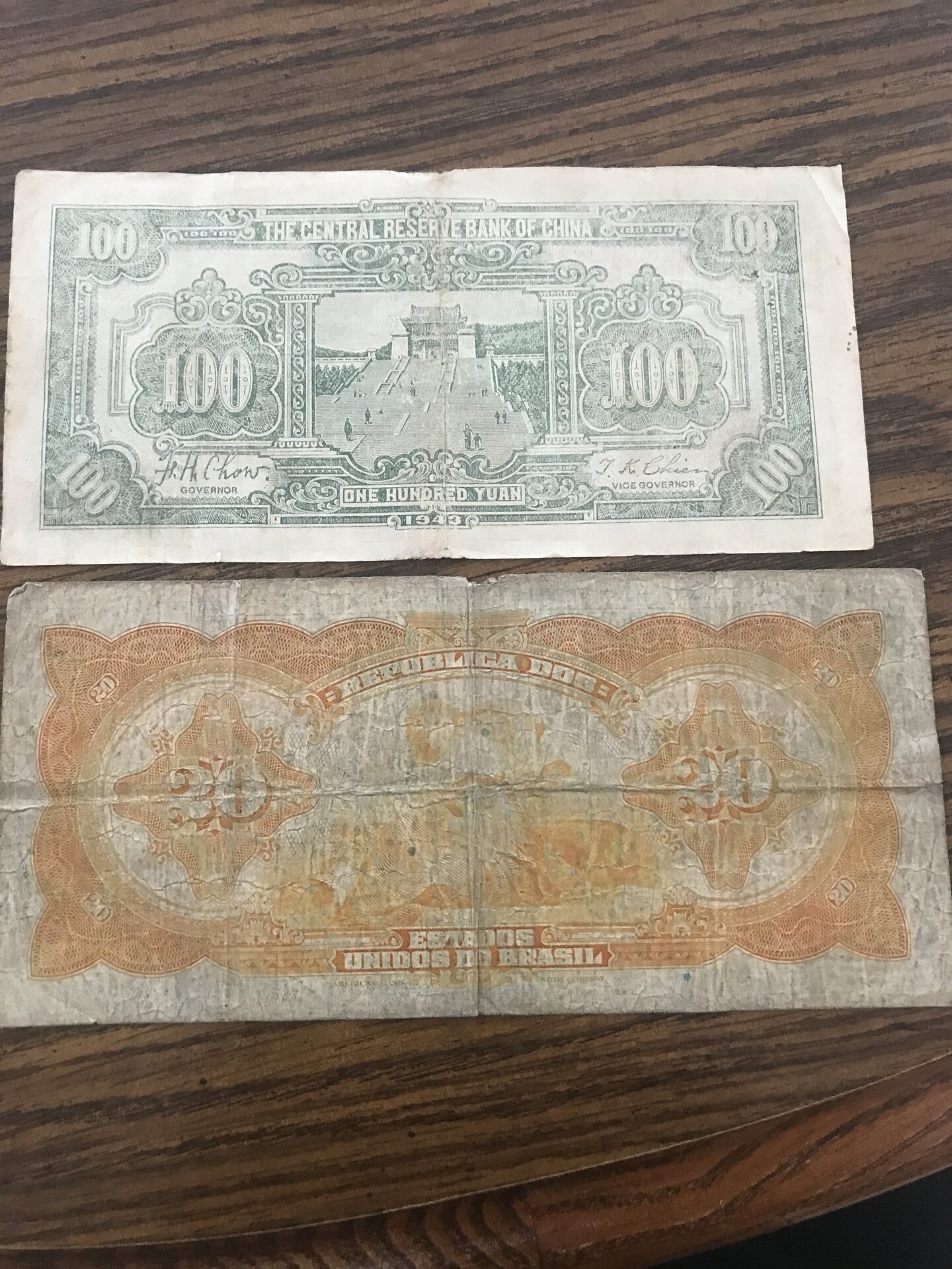 Next are these really neat banknotes from China and one from Brazil. As a fun side note the Brazilian note was made by the American Bank Note Company making the note a really neat specimen to add to any collection! F1E222B7-450C-484E-A504-93270025C375.jpeg 867FA3C3-1159-4752-A4AA-62E98D96EEED.jpeg