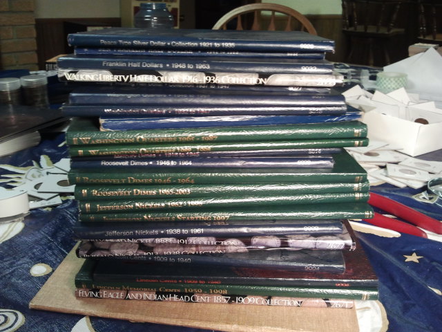I am selling 25 Coin books. Some of these are brand new and haven't even gotten a coin placed in them. I am asking $2.00 each. If you are just starting to collect coins these are the perfect books to help you get going with your collection!!! Dollars- Peace type silver dollar 1921-1935 Ike and Susan B Anthony Halves- Ben Franklin Half Dollars 1948-1963 (x2) Liberty Walking Half Dollar 1916-1936 (Brand new) Liberty Walking Half Dollar 1937-1947 Quarters- Washington State Quarters 1999-2003 (Brand new) Washington State Quarters 2004-2008 (Brand new) Washington Quarters 1988-1998 Washington Quarters 1965-1987 Washington Quarters 1946-1964 Washington Quarters 1932-1947 Liberty Standing Quarter 1916-1930 Dimes- Roosevelt Dimes 1965-1987 Roosevelt Dimes 1946-1964 (x2) Mercury Dimes 1916-1945 Nickels- Jefferson Nickels Starting 1997 Jefferson Nickels 1962-1996 Jefferson Nickels 1938-1961 Buffalo Nickel 1913-1938 Liberty Head Nickel 1883-1912 Pennies- Lincoln Cents 1959-1998 Lincoln Cents Starting at 1959 Lincoln Cents 1909-1940 (x2) Flying Eagle and Indian Head Cent 1857-1909 Let me know if you are interested in any or all and we can work out a shipping price. Thanks
