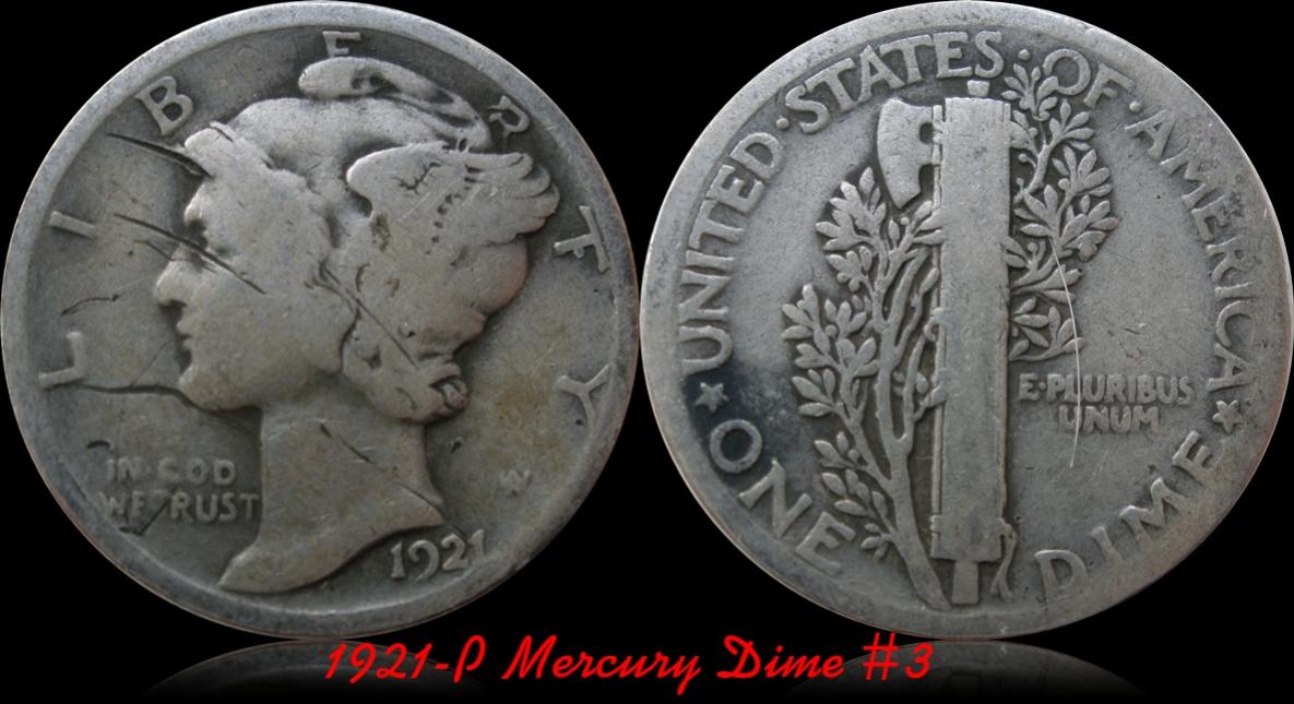 3 1921 Mercury Dimes
