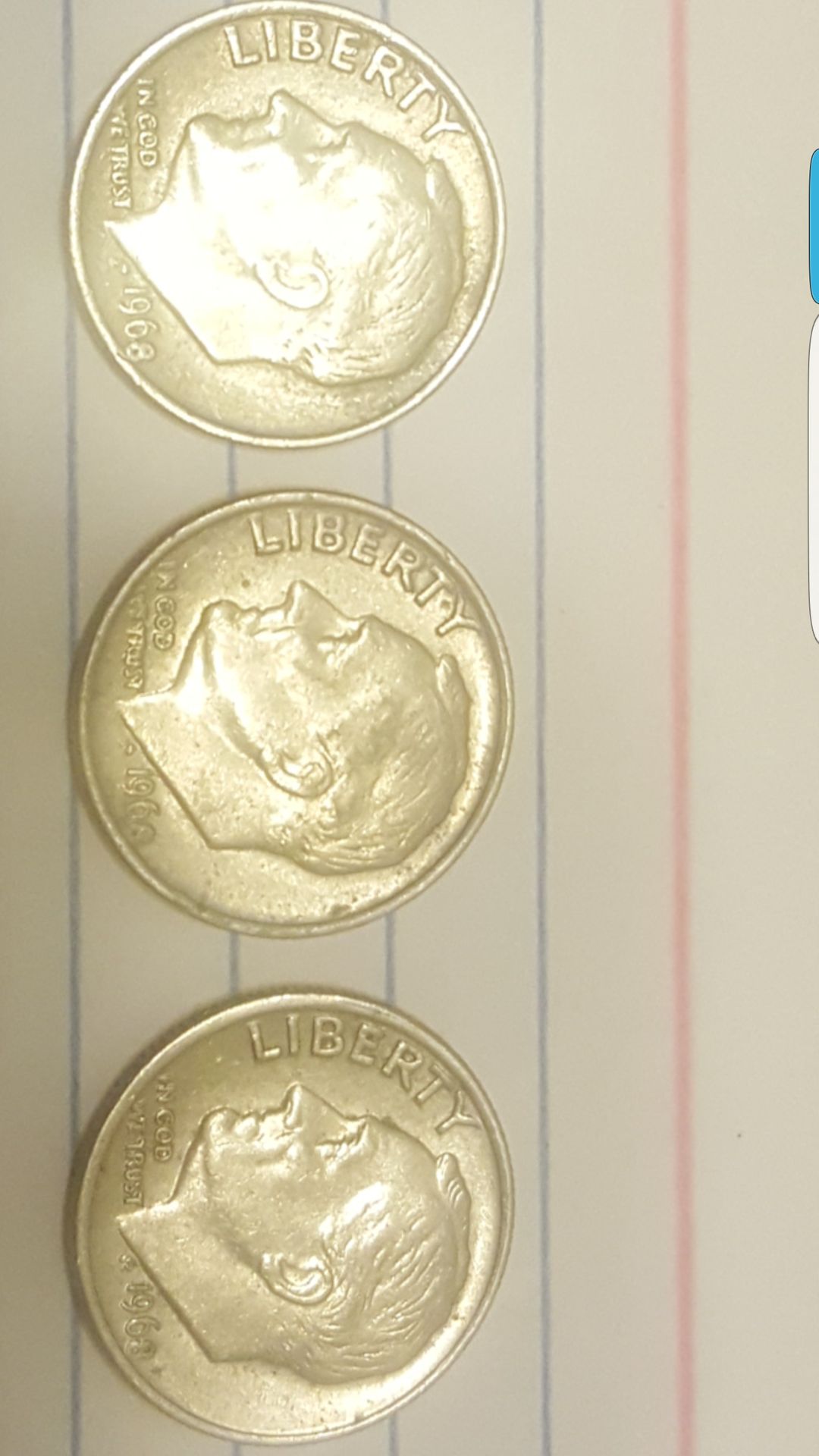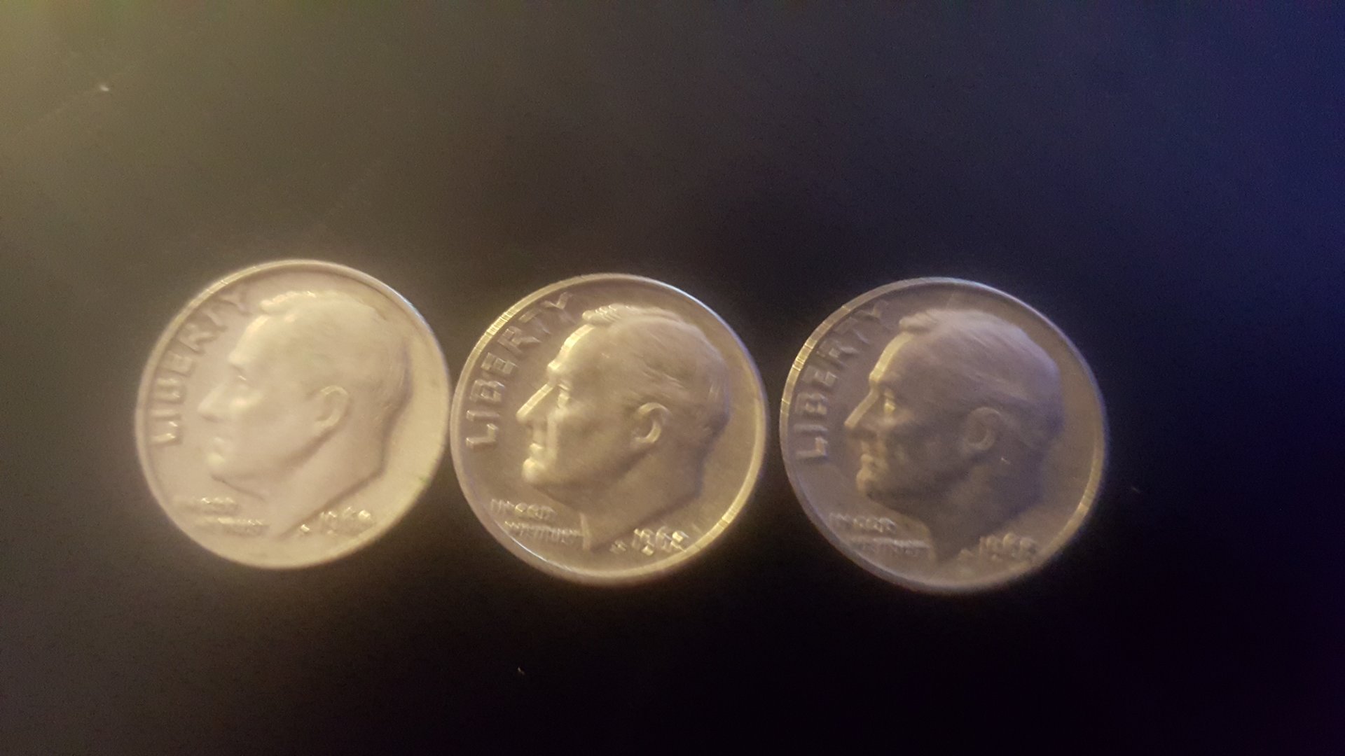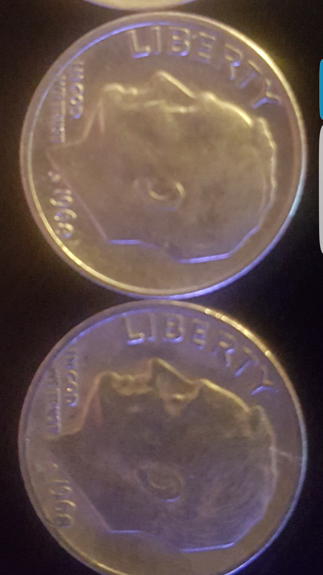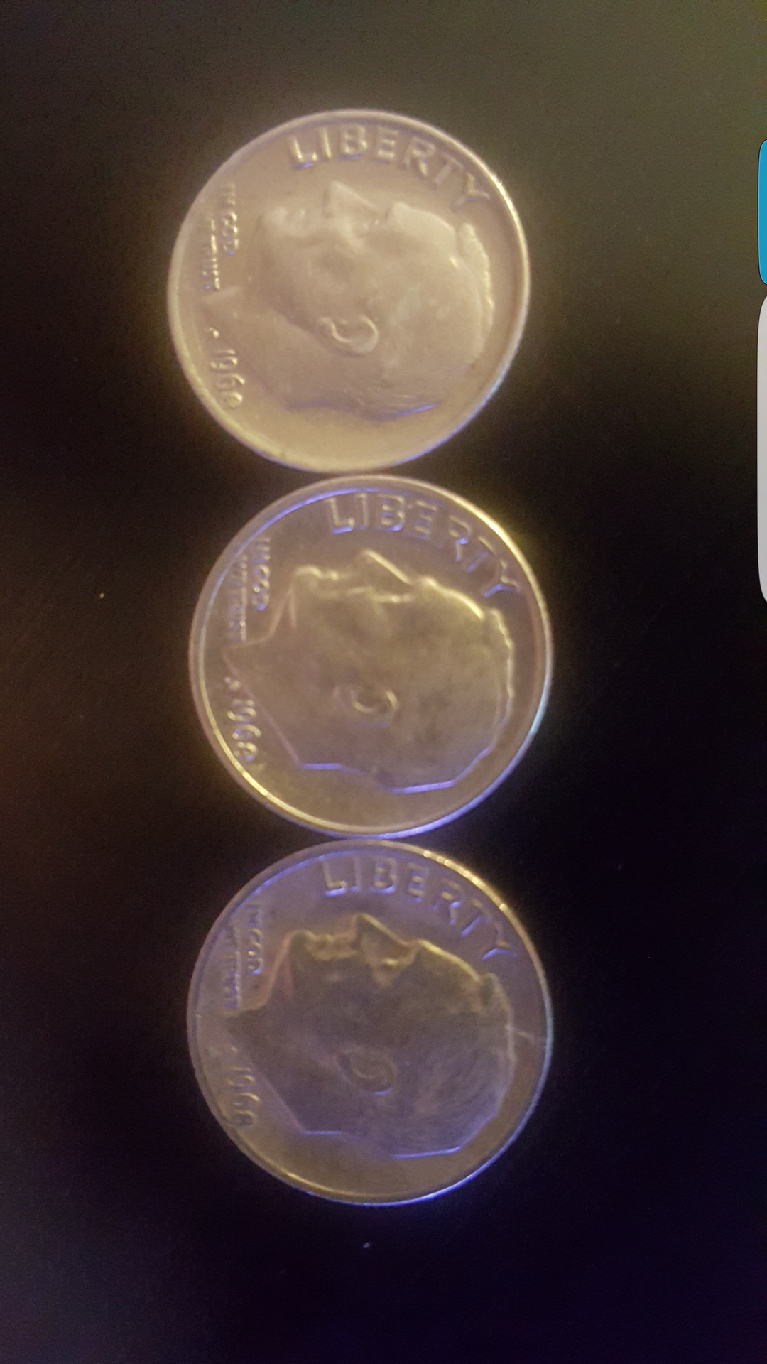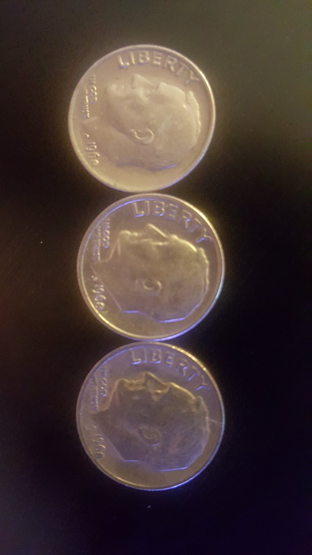 I'm sure 99.9% on here have more knowledge than me about this coin, my profession is in Dentistry. I have 3 dimes in pictures,which are all 1968 no S . 2 are most similar and one stands alone. The one looks and feels smaller, rim is very pronounced, lettering very easy to read and the number 8 is not flattened compared to. The size and angle of roosevelt is different, detail can be seen easily and the shine or coating is different. Any knowledge to share is appericated. Thank you.