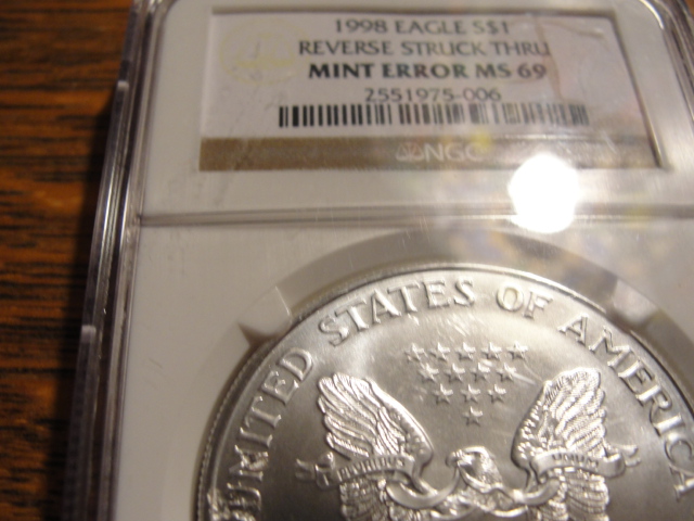 1998 NGC Silver Eagle MS69 Reverse Struck Thru 130.00 1884 O Pcgs MS62 (There is some sort of black line on coin) 45.00 2002 S Kenedy Silver PCGS PR70 DCAM (Theres a couple spots off Kennedy nose) 45.00