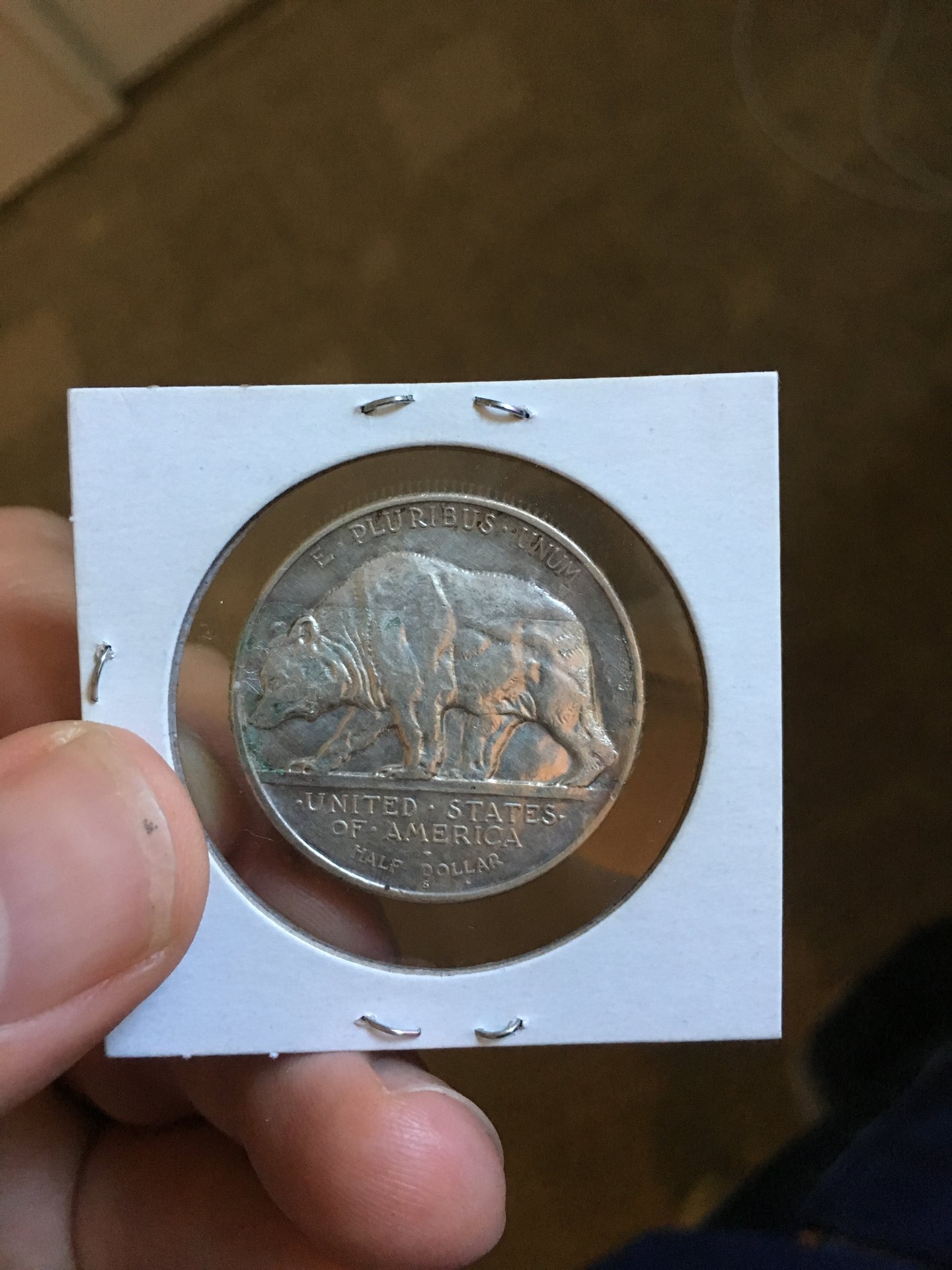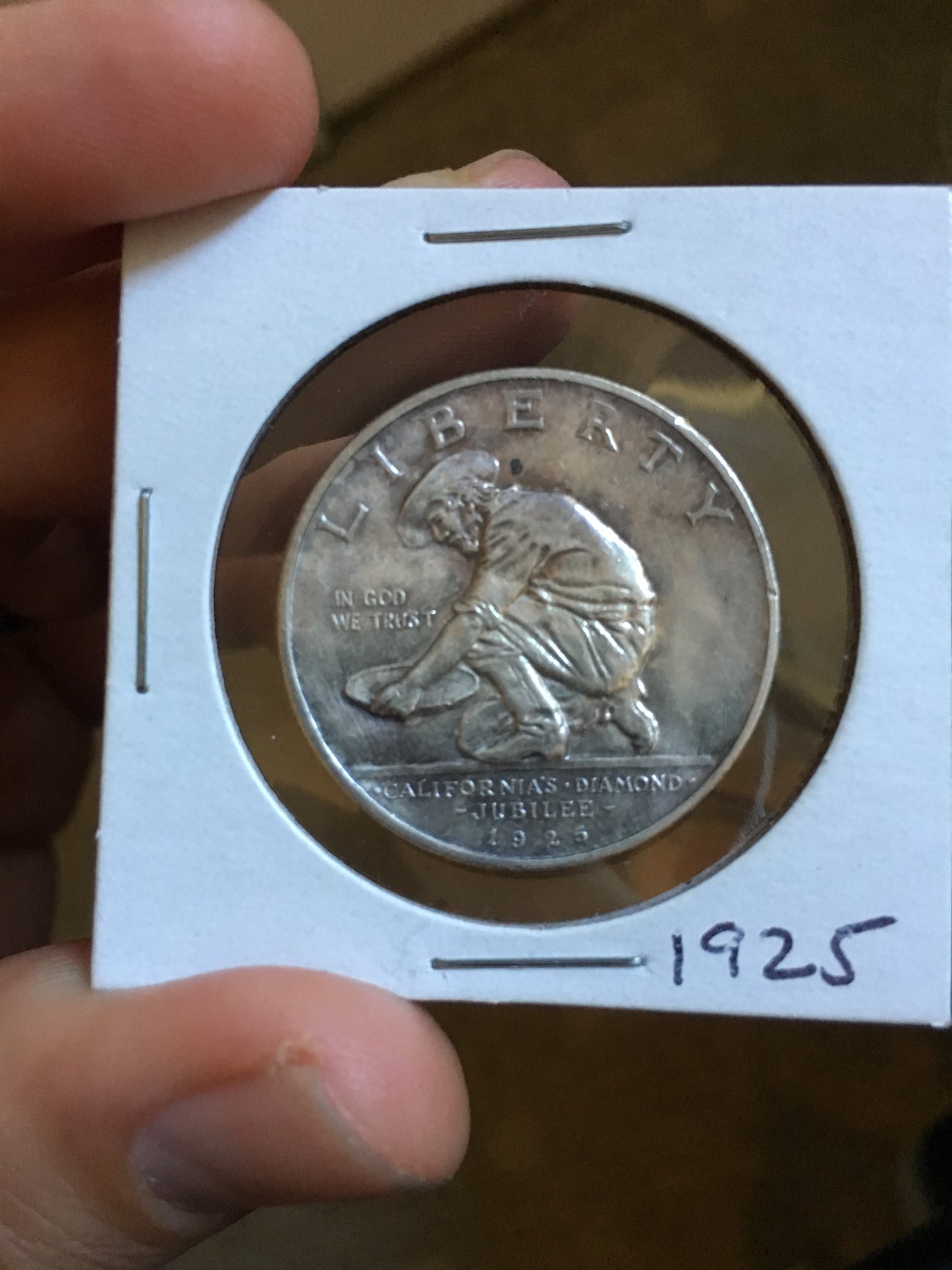 3 nice commemorative halves (1892/93 Columbian, 1925 Ca. Jubilee) Sticky residue?