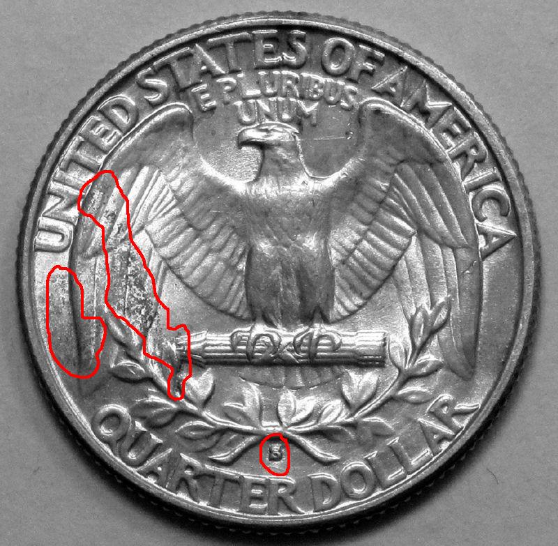 First, take a look at this coin (note the mint mark and the machine doubling in the last "s" of "States", exact match to OP's example: http://cgi.ebay.com/1932-S-Washingt...16?pt=Coins_US_Individual&hash=item43a4196504 Now, take a look at this "copy"... mushy details, doubled rim, totally different mint mark: http://cgi.ebay.com/Replica-1932-S-...03?pt=Coins_US_Individual&hash=item230d0bca1b The OP's coin is definitely die struck, has correct diagnostics... if it's a fake, it's the best I've ever seen.