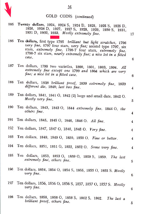 This is the page of the auction catalog with the lot of double eagles (total 17) including 1933 (click to enlarge) petronius