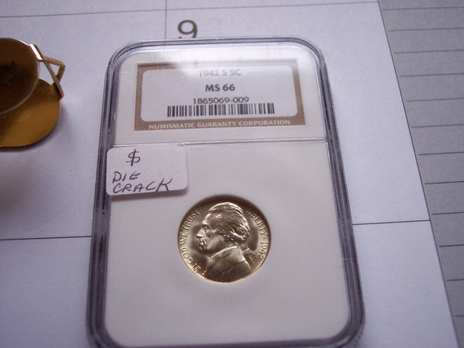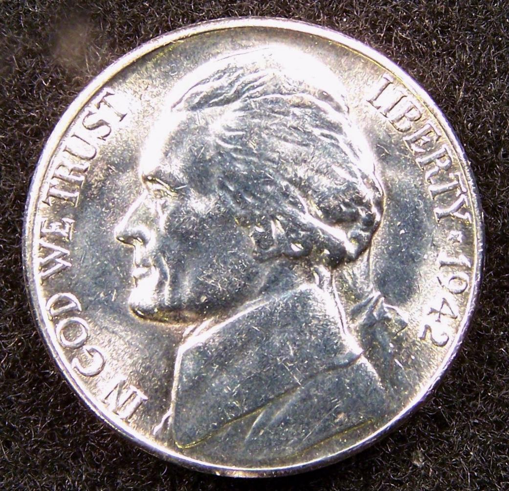 Zach24 ? This is your Lucky Day! I just seen your previous post. Bernard Nagengast mentioned in his book,"The Jefferson Nickel Analyst". This Die Varieties' haVE the Die-break extending through the "S" Mintmark, Creating a Dollar-Sign ($) Look to it! What makes this a little more of a Rarity'to me, is the fact' that this 1942-S' seems to have (2) Separate Die Cracks ! The 1st Die-Crack is from 12:00 down to the Dome. The 2nd Die-Crack is from about 5:00 up through the Building,(almost parallel to the plane of the 1st- Die-Crack. This San Francisco, (42-S) is well-known in the Series. I was taken-in,on just how Brilliant/Flashy,An'White this coin is. For a Silver War-Time Jefferson' this coin deserves some recognition. I've added Photo(s) of these Jeff Nickles... / Jim/ Chasindreams