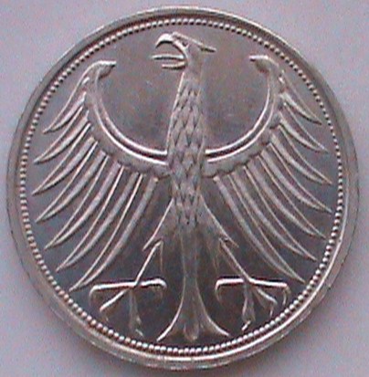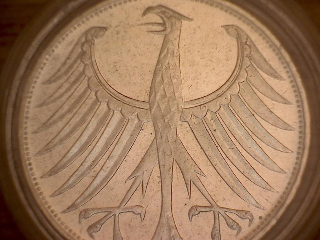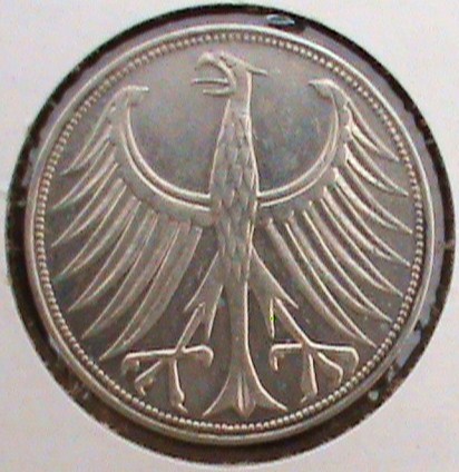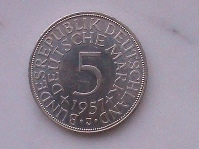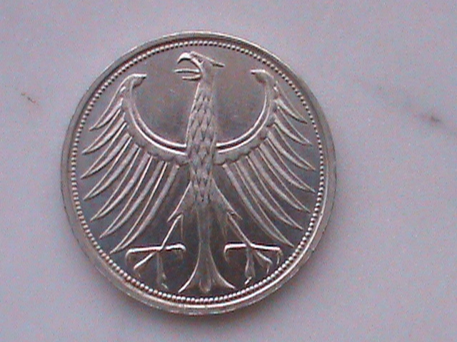 Hallo, wie geht es dir. Obviously I am a huge fan of the "screaming eagle" silver 5 mark. I am trying to complete a year type set (1951-1974). I am almost there! I need 4 more. Anyway, I just received some I was missing, and upgrades to others. I also buy duplicate years if the price is right and the coin is nice. A lot of these are not easy to come by with original mint luster and nice grades. Generally these coins seem to get banged up a lot more on the obverse, as you can see from most of these. It surprises many people to know they minted silver coins for circulation, all the way to 1974. Many mints had very low mintage, so those are very elusive to find in high grade. Type set amounts: Year set: 19 Year/mm set: 75 Proofs only: 75 (Some of these will cost 1-8k each) KM# 112.1 German federal Republic 5 MARK 11.2000 g. 0.6250 Silver 0.2250 oz. ASW 9 mm. Obv: Denomination above date Rev: Large eagle Edge: EINIGKEIT UND RECHT UND FREIHEIT "UNITY AND JUSTICE AND FREEDOM" Here are the new ones, in all their screaming eagle glory. A couple of them certainly look like proofs, even though they were ordered as business strikes. I'm not complaining. As always, thanks for looking and I hop to generate some interest in these beautiful coins.