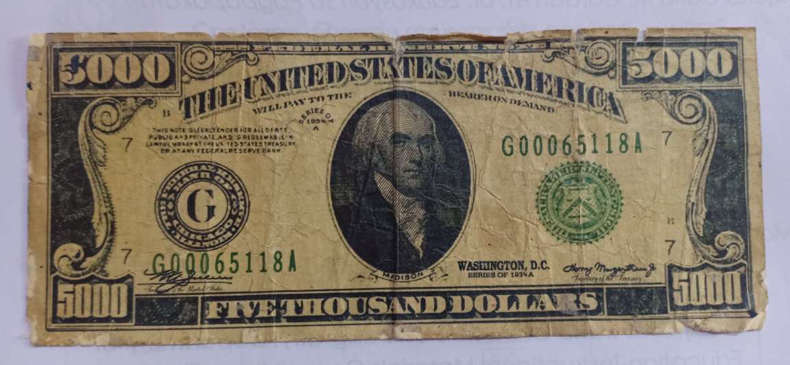 A friend of mine in the Philippines was given this years ago by an American. Some of you note experts can quickly look at this and say if it's real or not. I looked it up and some site said there are only 400 in existence and all the notes were called in to treasury in 1969. In looking at photos of 5k note on internet the note seems to match but I'm sure someone out there may have counterfeited these. Would this be real or would it have value to a collector?