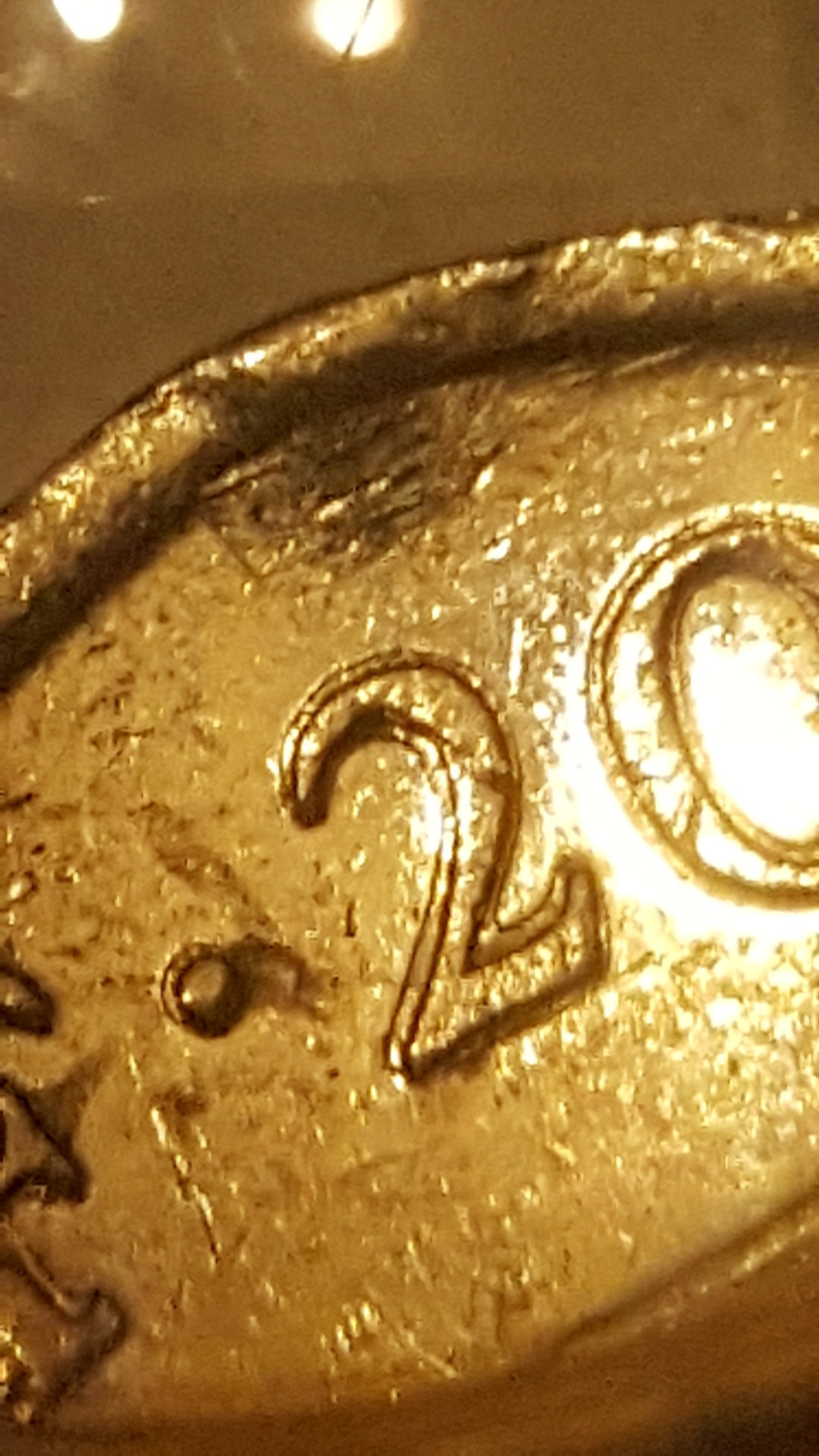 Die deterioration. Note the "doubling appears on BOTH sides of the digits. If this was a mid 19th century US coin we might call it Longacre doubling but in this case the die is "crumbling" along the edges of the digits.