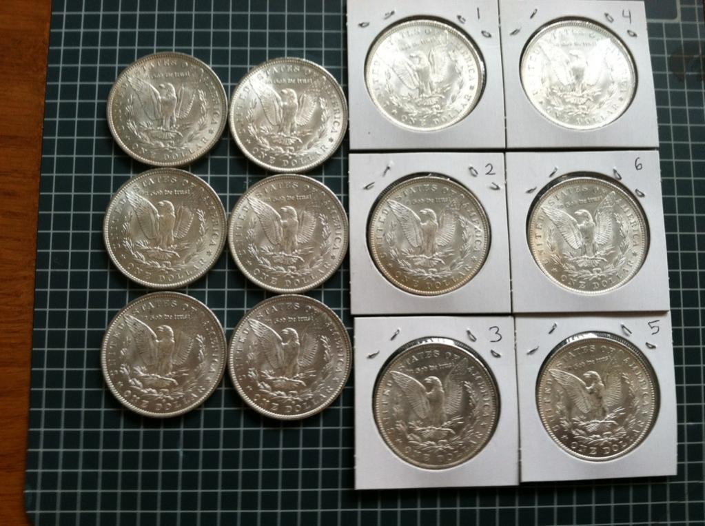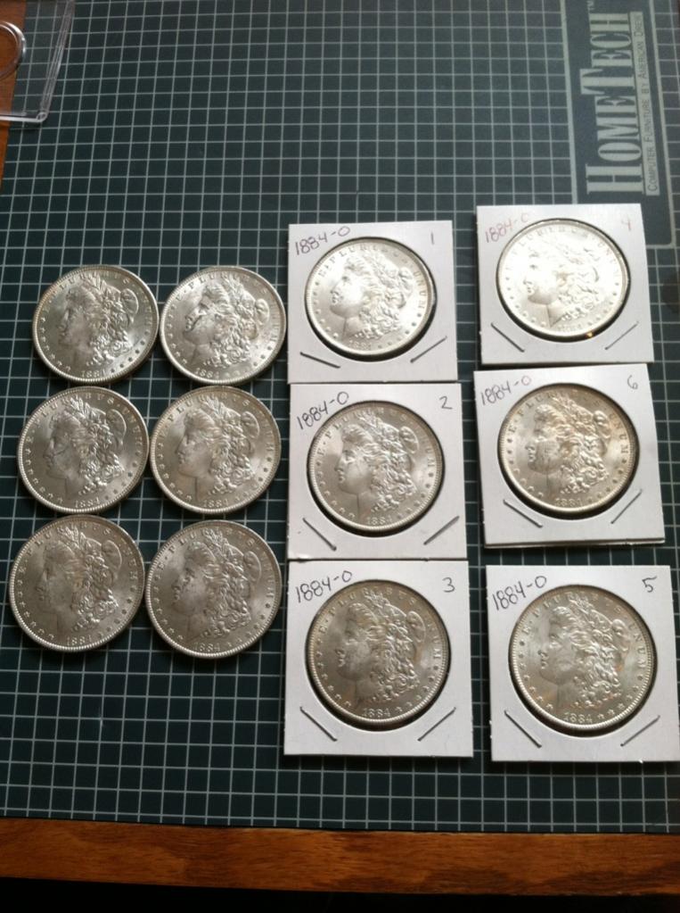 (4) Silver Quarters 4 x $5.0877 = $20.35 (5) Silver Dimes 5 x $ 2.0345 = $10.17 (1) 2008 American Silver Eagle = $33 --------------------------------- $65 Shipped (6) BU 1884-O Morgan Silver Dollars *$50 Each* ------------------------------------------ $300 + Shipping You can see the coins in this thread http://www.cointalk.com/t210969/ You may buy 1 coin or all 6, check out the coins in the thread they are numbered #1-6 PayPal + 3%