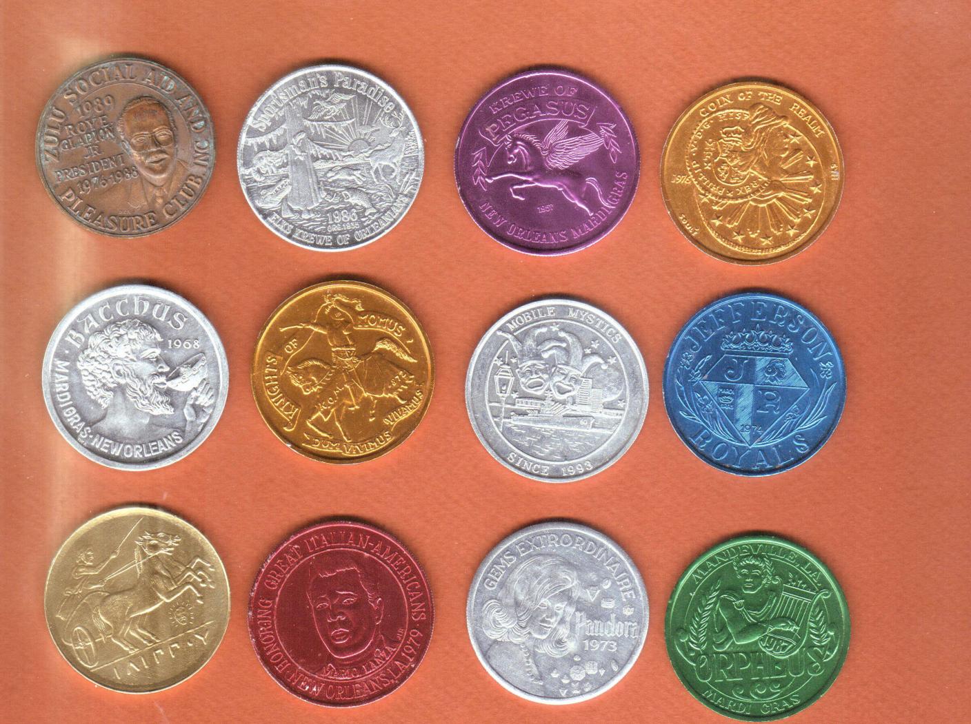 Offering 6 Gaming Tokens for $18 postpaid. and Offering 12 Mardi Gras Tokens for $21 postpaid. Buy both for $35 postpaid plus get 10 misc wooden nickels free. The $35 offer expires as soon as someone buys just one of the two collections. Payment by PayPal or money order; no cash please. =============== List of Tokens: Gaming Tokens 1. Golden Nugget Atlantic City 2. Harrah's Lake Tahoe 3. Atlantis Paradise Island Bahamas 4. Fitzgerald's Las Vegas dated 1988 5. McCarran Airport dated 1992 6. Reno's Horseshoe Club Mardi Gras Tokens 1. Zulu Social Aid and Pleasure Club dated 1989 (bronze?) 2. Elks Crewe of Orleanians dated 1986 3. Krewe of Pegasus dated 1975 4. The Golden Cup of Comus dated 1976 5. Bacchus dated 1968 6. Knights of Momus (1976?) 7. Mobile Mystics dated 1997 8. Jefferson Royals dated 1976 9. [inscribed only in Greek letters, may not be Mardi Gras] 10. Italian-Americans Marching Club dated 1979 11. Krewe of Pandora dated 1973 12. Orpheus of Mandeville dated 1993. All 18 pieces are circulated, none are silver.