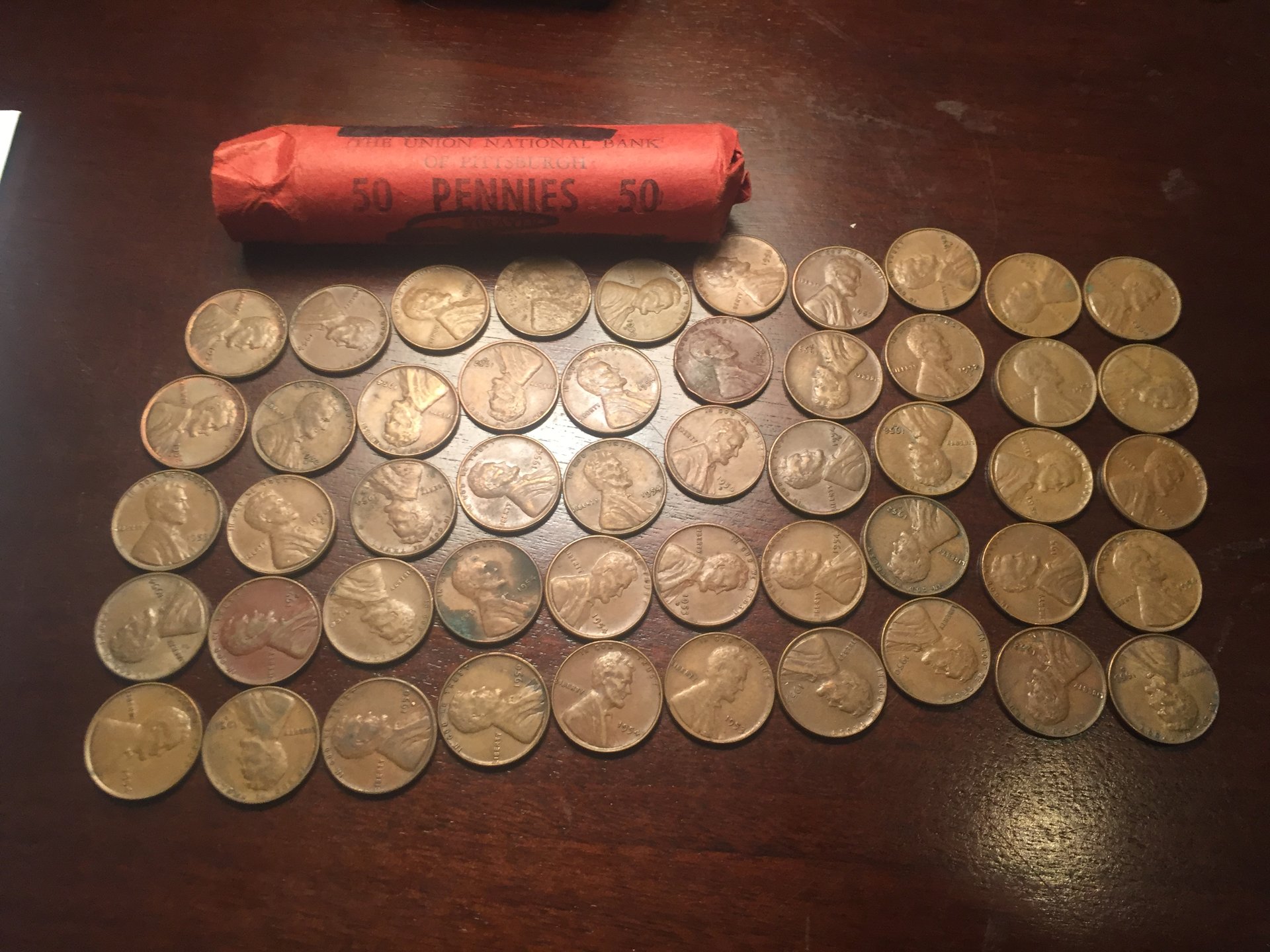 Man there are 153 1955s. I will have to look through these again. I am worn out. So we have $5 in lincolns going back to the bank tomorrow so my money spent was $8. Came out with a total of 886 wheats for $8. Nearly every roll had more than 50 coins in it. Of the 886 wheats - 50 were dates prior to 1950 which I will have to further look at tomorrow. Here is a picture of the breakdown of dates found from 1950-1958. 836 in total.