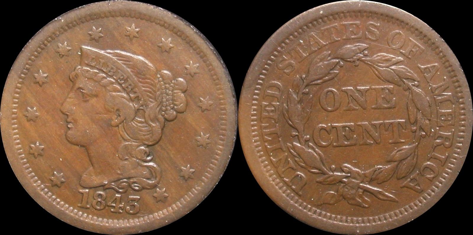 Nice coins, guys. Here are my 42's and 3's.... For 1842 I have only one coin...a large date N-6 (ANACS VF-35): For 1843,I have this N-8 (petite head, small letters, PCGS AU 58) And this N-10 (also a petite head, small letters, but this one is graded NGC MS 62 BN ex:Reiver): The above coin was described in the Reiver auction in Jan 2006 as follows: 1843 1C Petite Head, Small Letters. N-10, R.3. MS62 Brown NGC. XF45 EAC. Grellman state b. This assertively struck medium brown example is slightly deeper in color on the portrait. Well struck on the stars and major devices. Short pinscratches are seen on the cheekbone and above the E in ONE, and a few unimportant marks accompany the obverse field. Luster beckons throughout when the piece is rotated beneath a light. Ex: George Ramont (8/9/1977). Envelope Included. Have fun and happy holidays everyone!