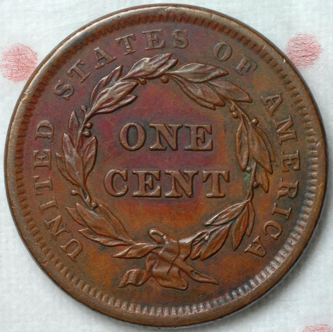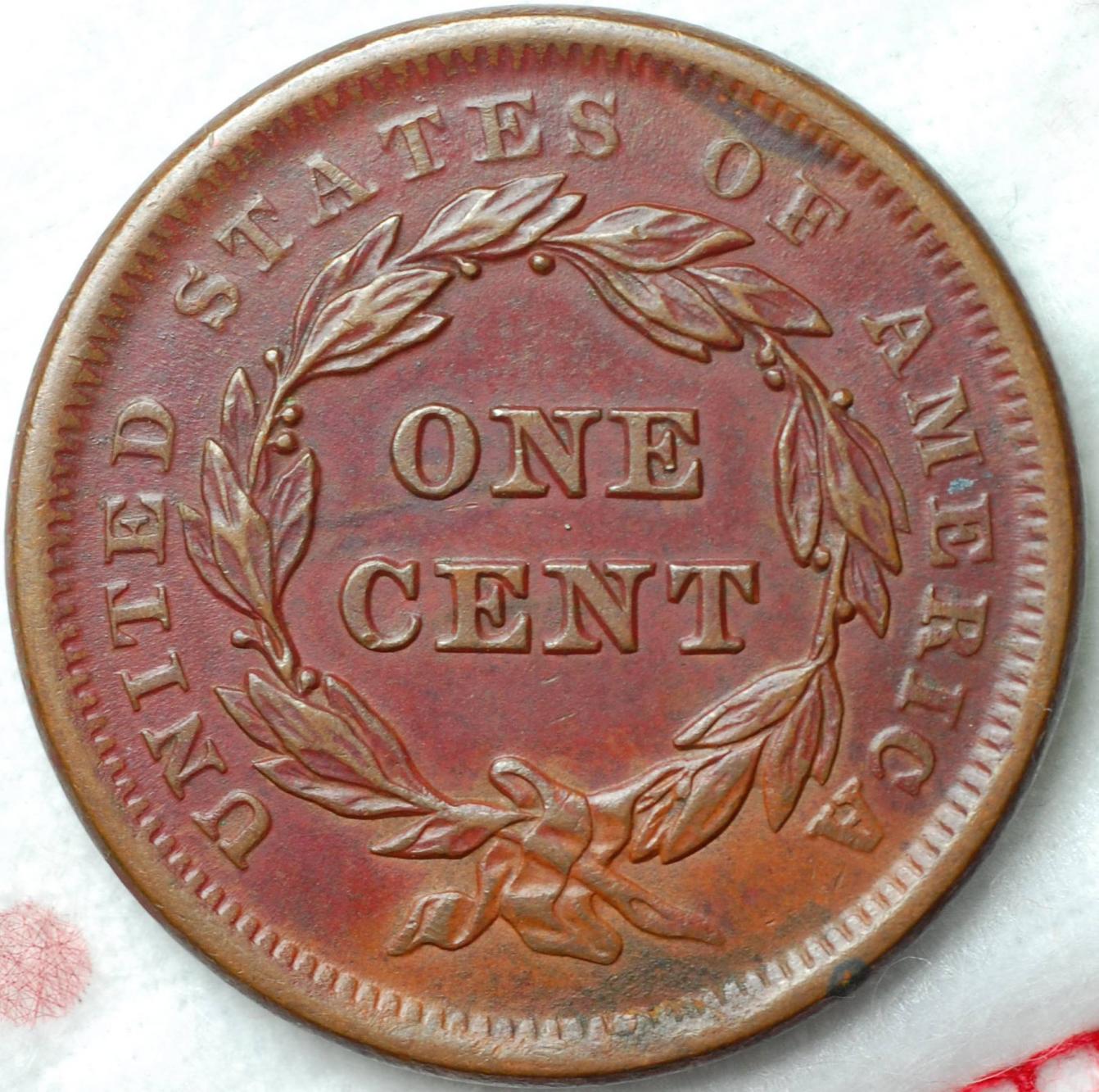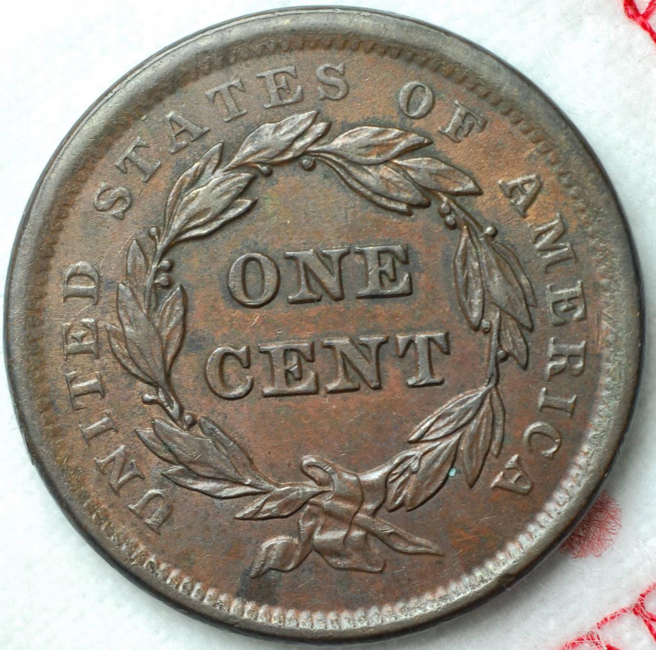 Beef, Really like that last '40. That's quite a looker! OK, let's start on 1841.... Here's an N-6 that the old ANACS called an AU 50: What attracted me to the coin were the relatively nice surfaces. The old hit on the chin doesn't bother me at this grade, nor does the reverse schmutz. Much like the last 1840 I posted, it's just a cool coin -- to me -- regardless of grade or value. Also, for some reason, I prefer the early 1840's busts over all other designs of the large cent. They just say "large cent" to me, oddly enough. Have fun...Mike