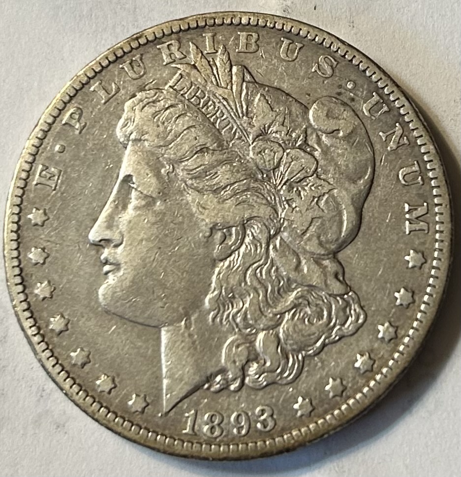 This is a 1893-O Morgan Dollar. Only 300,000 were minted, so they are hard to get but still affordable in the mid hundreds range. The other four just get costlier. She’s nice, clean but circulated and fits into my set nicely. Some are better and some are more worn. Please join me in my happiness. :shame: