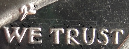 While it's true that the doubling of 'trust' is minor, and that it's probably not a DDO-006 as I originally thought, what about the srtong doubling in the BERTY of 'liberty' seen here? Now I see that in the CPG there is another one more similar to mine (FS-50-1971S-101) in which the decription mentions ERTY of 'liberty' and everything else I've pictured here.... Could mine be that?