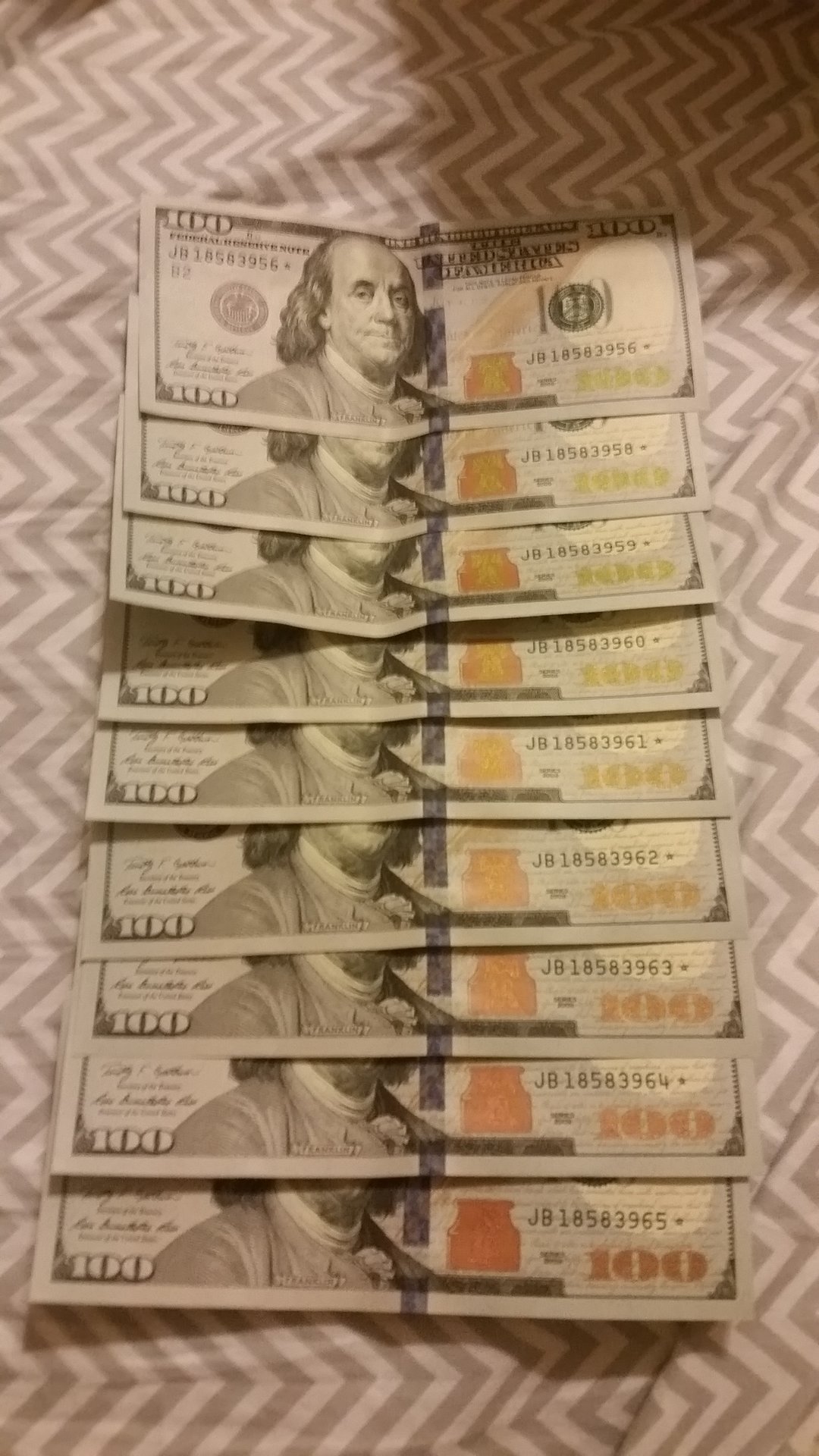 I happened to get a few star notes from the bank today. Eight consecutive $100 star notes.