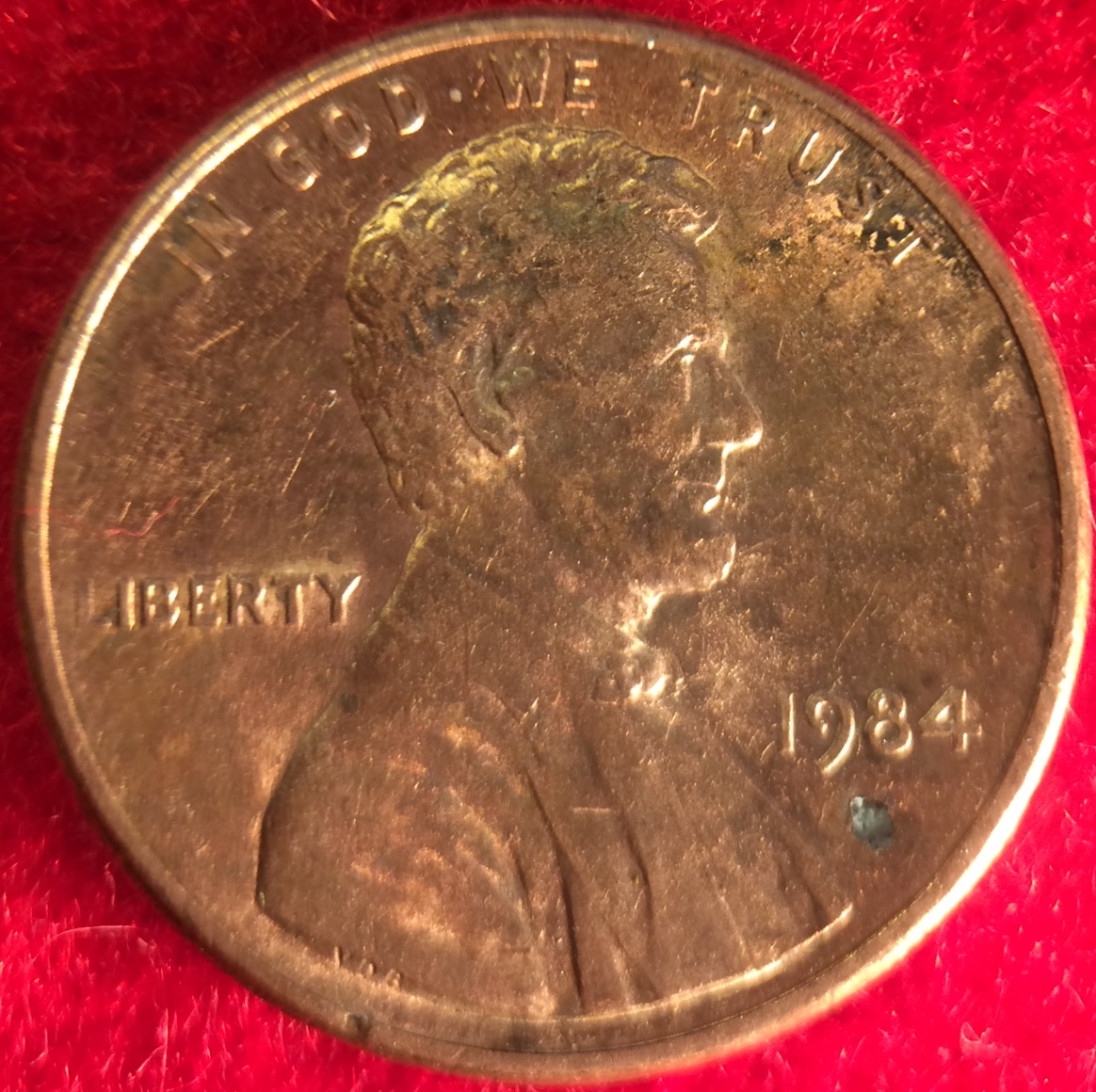 I agree with it being a plating blister or zinc corrosion. It took the blank/planchet suppliers a few years to work out all of the bugs in the plating process, so blisters are very common on cents from the 80's