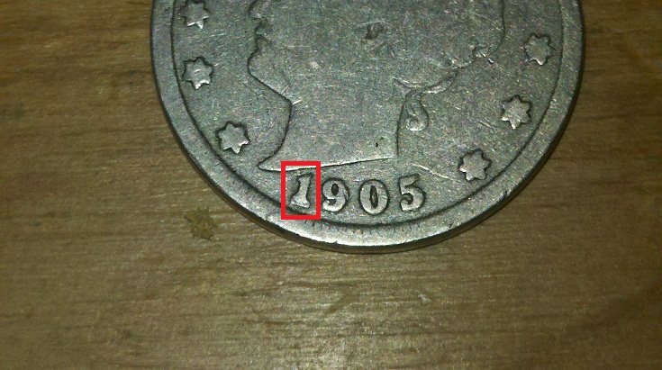 There are quite a few varieties for Liberty Nickles and the 1905 has several. One that might be yours is the "1905/19 (FV-RPD-001, PM-42.1 )" Repunched 1 seen below the serif. Repunched 9 seen below the middle. Take a close look at the "9". This info, and much more, is available at the Liberty Nickle Collector Society: http://www.libertynickels.org/index.php?
