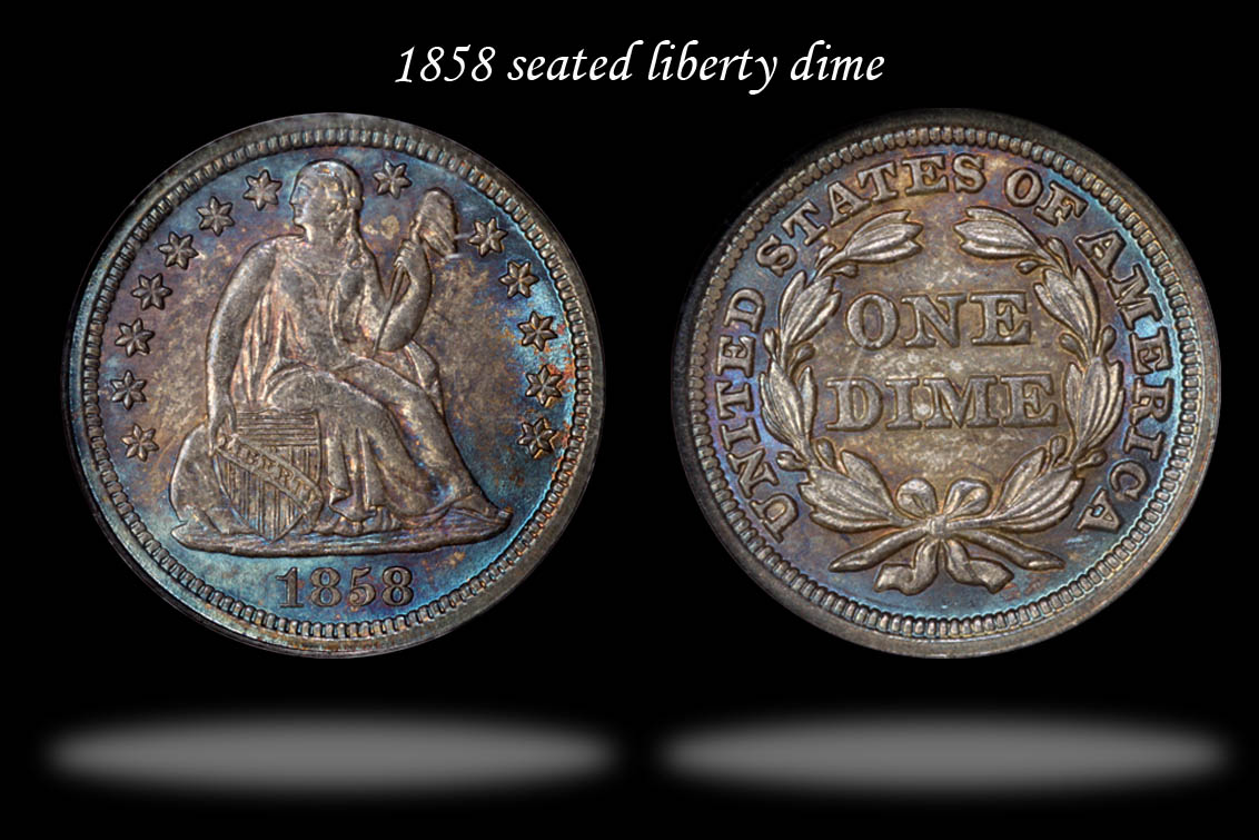 Hey guys ! Here are the latest new purchases. PM for pics and prices. I think you'll agree all offer exceptional eye appeal for the grade. Tell ya what... I'll go ahead and throw down pics of the 1795 half and 1858 dime. Enjoy ! Ricky B TNA Region 4 Governor 900fine [TABLE="width: 252"] 1805 1c VF25 NGC 1888 3cN PR64 PCGS 1916-S 5c MS64 NGC 1926-S 5c VF35 PCGS 1936-D 5c MS66 PCGS 1858 10c MS64 NGC fabulous natural toning 1884 10c NGC MS66 subtle target toning 1806/5 25c F15 PCGS B-1 r.2 1880 25c Indian Octagonal 25 Cents, BG-799X, r.3 MS63 PCGS 1795 50c 2 Leaves XF40 PCGS O-105a r.4 1826 50c MS62 NGC O-112a r.2 1834 50c Large Date Small Letters MS64 NGC O-105 r.1 1893 50c PCGS AU55 1883-O S$1 MS65* NGC magnificent rainbow toning [/TABLE]