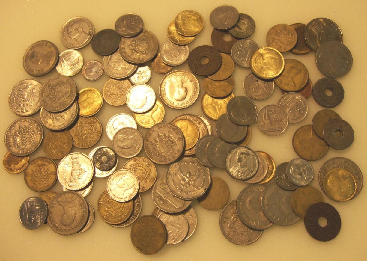 Total 91 coins from Thailand; no silver; no culls; includes duplicates. I can't read the dates, but most appear to be 1940s to 1970s. KRV5. Price $20 postpaid, shipped ONLY in the United States. Payment by PayPal, check, or money order; no cash please.