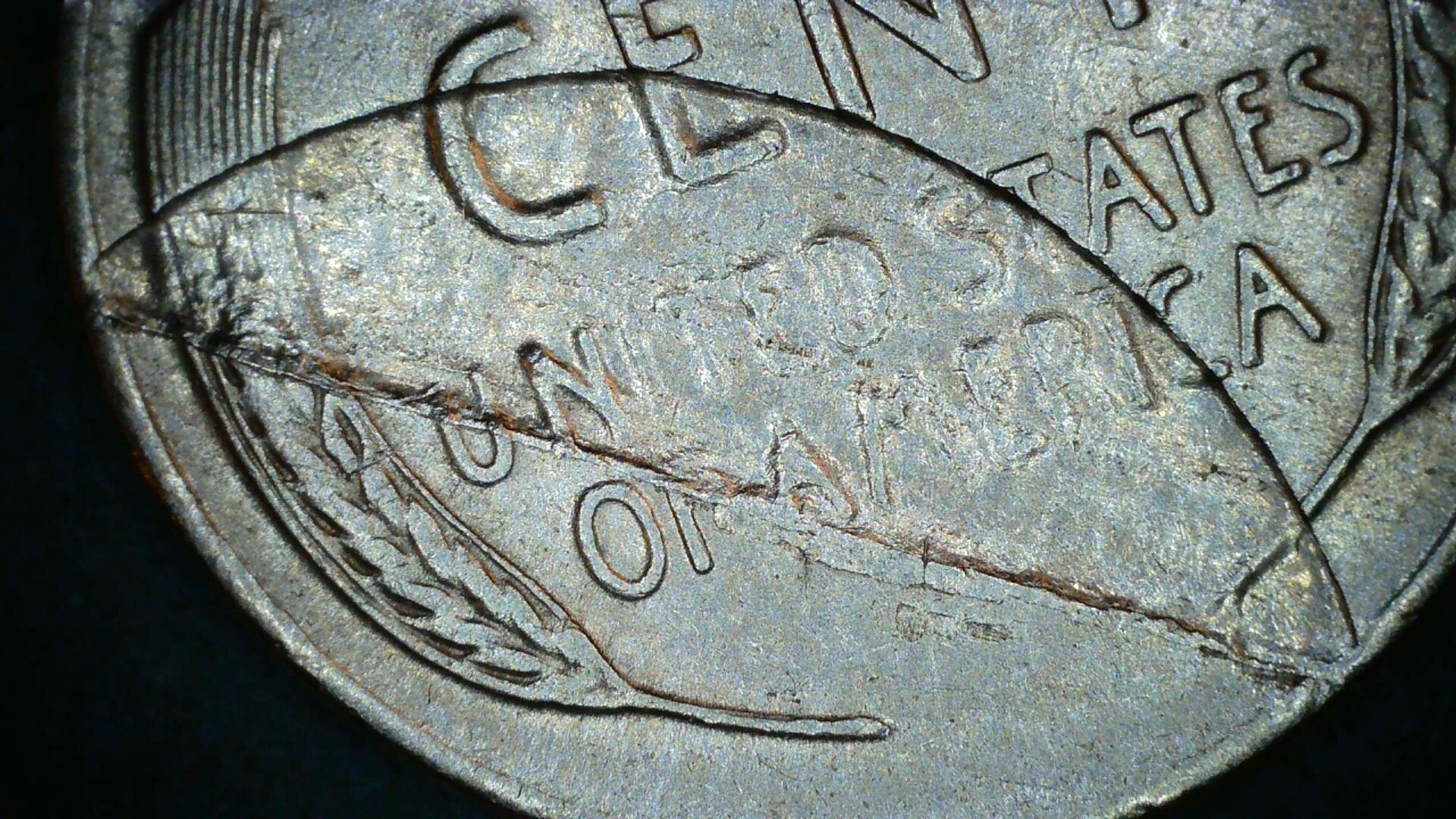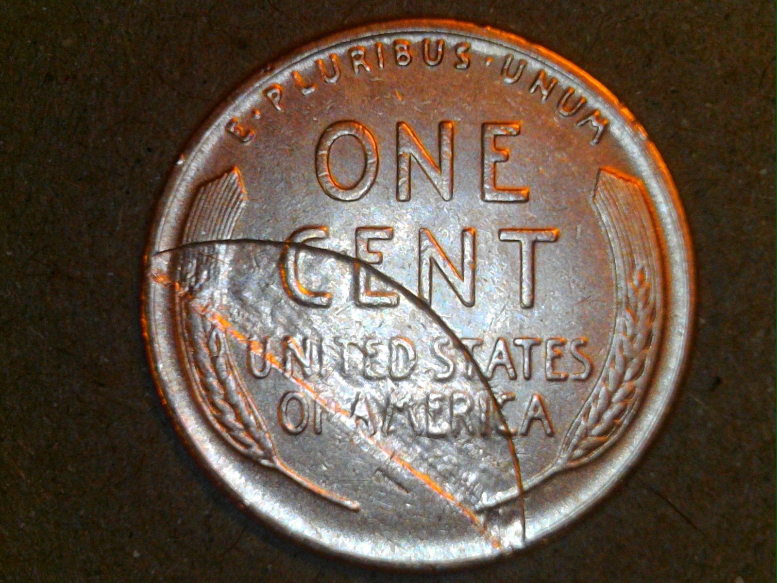 Hello All, I just found a coin in a roll of American pennies and it has an error on its reverse side I've not seen before. Can anyone offer a clue or explanation on what it is and how it was created? Any information would be very much appreciated. Thank you, Dave