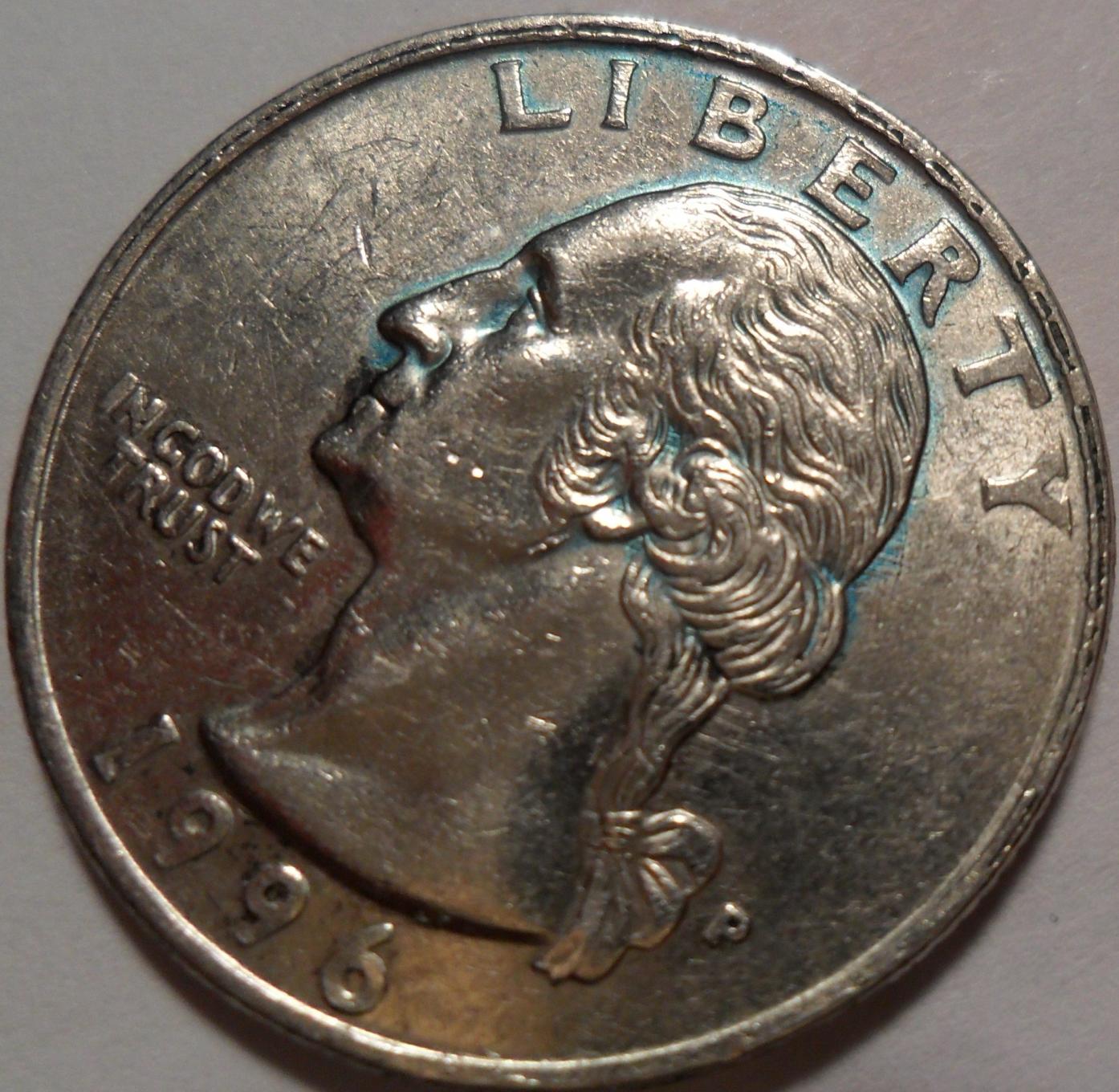 the blue wiped off easily and i do not think it was dipped in anything. i just wonder if it may be casino damage or came from the mint that way.