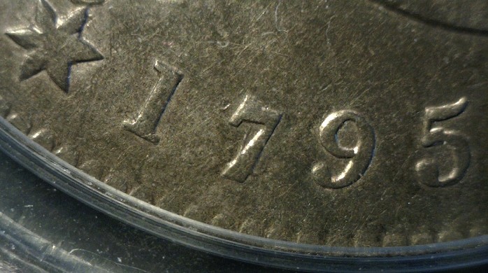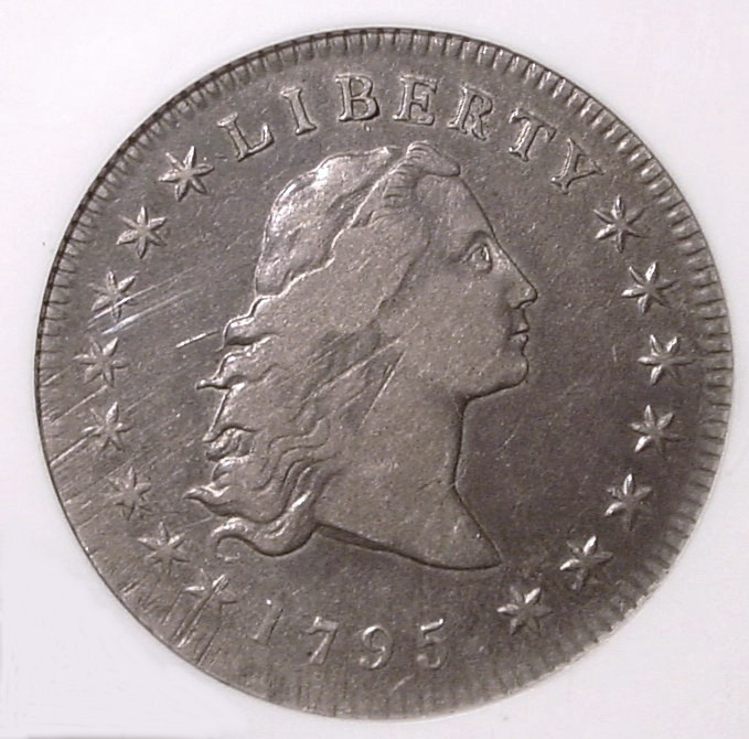 A 1795 Flowing Hair Dollar struck with a blundered die in the date area