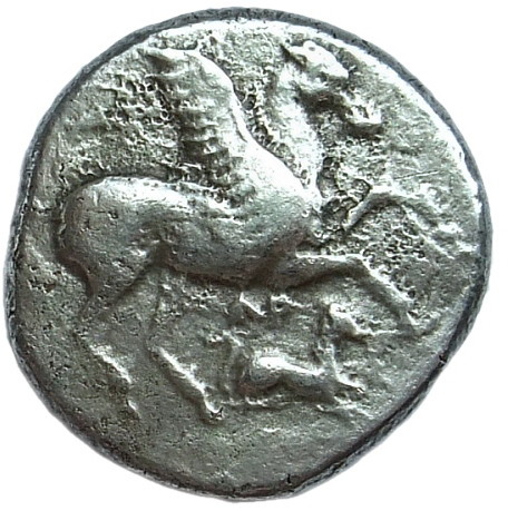 Yah, that's Argos, Odysseus's faithful old dog and namesake of the city. He waited 20 years for his master to return from his travels, and when he did, the poor old dog wagged his tail and gave up the ghost. I had this type on my want list before this one popped up unexpectedly in a mixed lot.