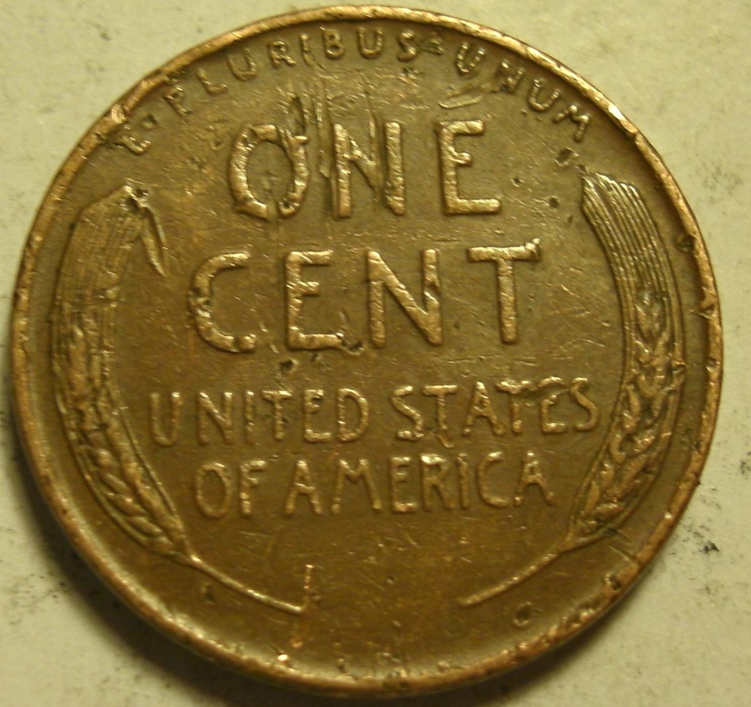 That's certainly a possibility, but the mark itself is where a mint mark should be. Here's the pic you asked for, along with one of the whole obverse. As you can see, this penny has been around the block quite a few times. Sadly, the reverse has got a few gouges.